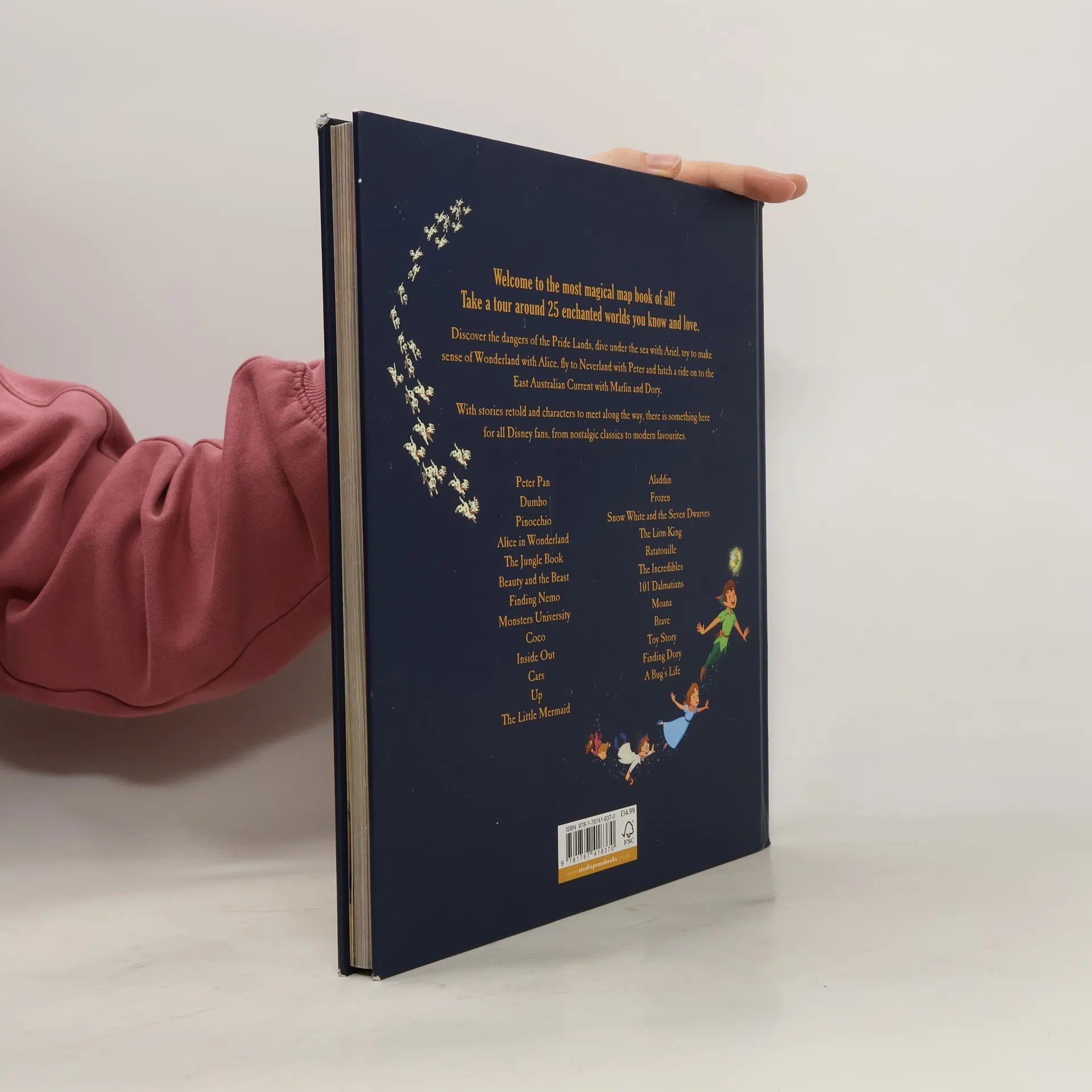 Dive into your favourite Disney worlds with this beautiful atlas of 25 official maps. Welcome to the most magical atlas of them all! Discover the dangers of the Pride Lands, dive under the sea with Ariel, try to make sense of Wonderland with Alice, fly to Neverland with Peter and hitch a ride onto the East Australian Current with Marlin and Dory.With stories retold and characters to meet along the way, there is something here for all Disney fans, from nostalgic classics to modern favourites.Includes maps from the following feature films: Peter Pan, Dumbo, Pinocchio, Alice in Wonderland, The Jungle Book, Beauty and the Beast, Finding Nemo, Monsters University, Coco, Inside Out, Cars, Up, The Little Mermaid, Aladdin, Frozen, Snow White and the Seven Dwarves, The Lion King, Ratatouille, The Incredibles, 101 Dalmatians, Moana, Brave, Toy Story, Finding Dory, and A Bug's Life.