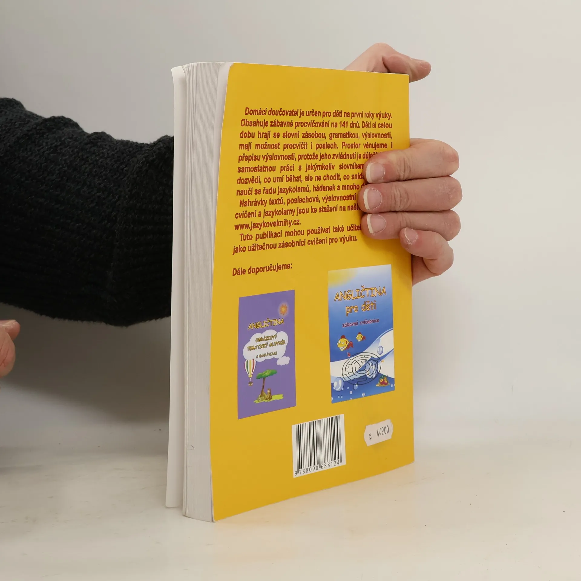 Angličtina domácí doučovatel obsahuje učivo přibližně pro děti 3. - 5. třídy běžné základní školy. Pomůže dětem najít si cestu k angličtině, protože si s ní budou hrát, hledat, luštit, vybarvovat, budou muset přemýšlet a hlavně začnou získávat pocit “jazykového” sebevědomí z nabytých vědomostí, tolik nutný pro další chuť učit se. Tato celobarevná cvičebnice obsahuje téměř 150 dvojstran na téměř 150 dnů doučování.