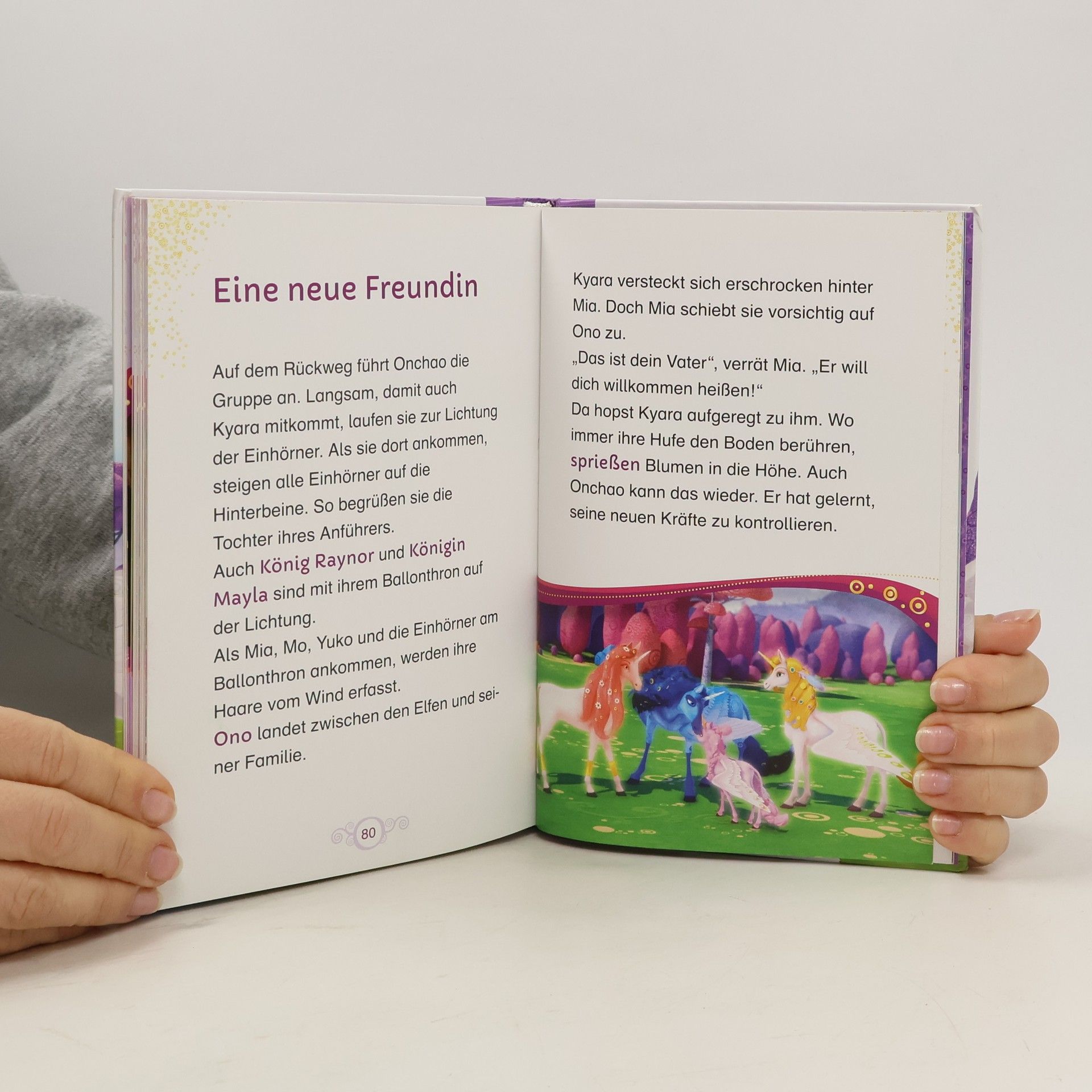 Flieg mit Mia nach Centopia! Magische Erstlesegeschichte für Einhorn-Fans ab 7 Jahren Tolle Neuigkeiten in Centopia: Lyria bekommt ein Fohlen! Mia schließt Onchaos kleine Schwester sofort ins Herz. Leider erfährt auch Gargona von der Geburt eines neuen Einhorns mit goldenem Horn und schmiedet sofort finstere Pläne mit Lord Drakon. Onchao eilt seiner kleinen Schwester zu Hilfe – und entdeckt in sich ungeahnte Kräfte. Die ganze erste Folge der 3. Staffel zum ersten Selberlesen ab 7 Jahren. Die magischen Geschichten rund um Mia und Onchao begeistern Kinder bereits seit Jahren. Mia ist eigentlich ein ganz normales Mädchen, doch mit einem Spruch aus ihrem magischen Buch und einem wertvollen Armreif kann sie in die wunderbare Welt Centopias reisen. Dort verwandelt Mia sich in eine Elfe und erlebt viele Abenteuer mit ihren neuen Elfen-Freunden Yuko und Mo und dem geflügelten Einhorn Onchao.