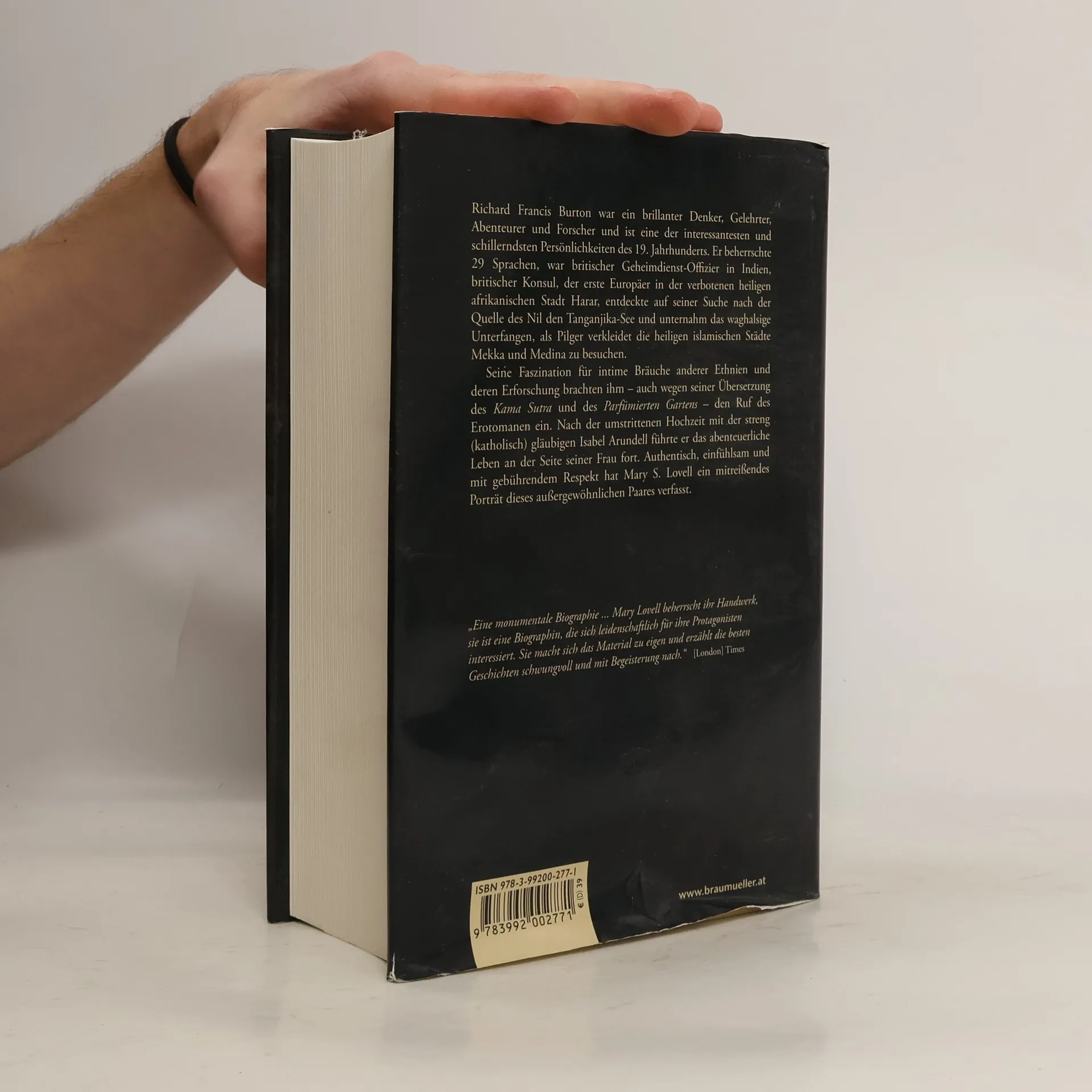 "Ich will leben ... Ich will ein wildes, unstetes, abenteuerliches Leben führen ... Ich wünschte, ich wäre ein Mann. Könnte ich das sein, wäre ich Richard Burton; doch da ich eine Frau bin, möchte ich Richard Burtons Frau sein ... Ich würde jetzt, in diesem Augenblick, alles aufgeben und opfern, um seinem Schicksal zu folgen ..." (Isabel Burton, aus einem Brief an ihre Mutter). Aus diesen Zeilen spricht die tiefe, leidenschaftliche Liebe Isabel Arundells zu dem Forschungsreisenden und Orientalisten Richard Burton zuerst durch seine Erfolge im viktorianischen England gefeiert, später aufgrund von Gerüchten und seines unangepassten, rebellischen Verhaltens vom Establishment geächtet. Schon früh wusste Isabel, die aus altem katholischen englischen Adel stammte, dass sie mit dem zehn Jahre älteren Mann ihr Leben verbringen und die Welt bereisen will. Trotz des erbitterten Widerstands ihrer Mutter heiratete die temperamentvolle, starke, unabhängige Frau den skandalumwitterten Abenteurer. Richard und Isabel Burton erkundeten die entlegensten Orte der Erde in Indien, Arabien, Damaskus u. v. m., wo sie teilweise haarsträubende Abenteuer erlebten. Authentisch, einfühlsam und mit gebührendem Respekt hat Mary S. Lovell ein mitreißendes Porträt zweier Leben verfasst.