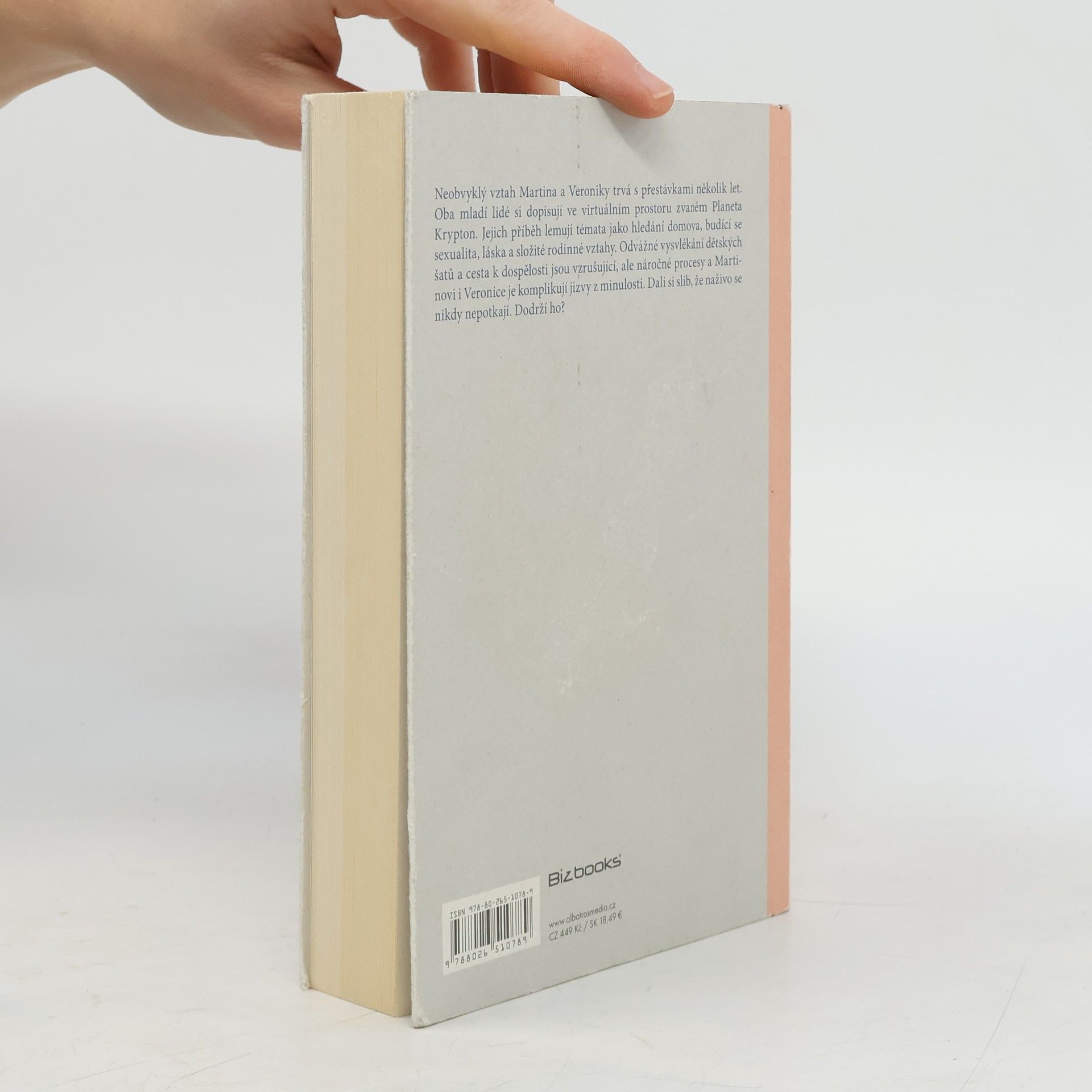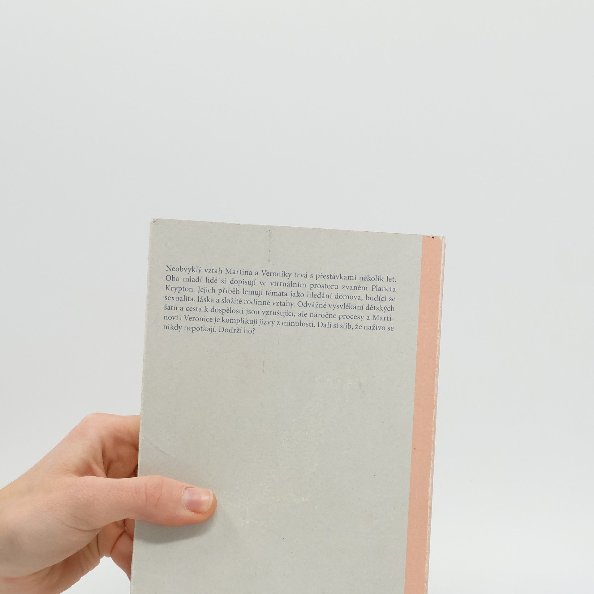 Románový debut oblíbeného herce, scenáristy a režiséra. Neobvyklý vztah Martina a Veroniky trvá s přestávkami několik let. Oba mladí lidé si dopisují ve virtuálním prostoru zvaném Planeta Krypton. Jejich příběh lemují témata jako hledání domova, budící se sexualita, láska a složité rodinné vztahy. Odvážné vysvlékání dětských šatů a cesta k dospělosti jsou vzrušující, ale náročné procesy a Martinovi i Veronice je komplikují jizvy z minulosti. Dali si slib, že naživo se nikdy nepotkají. Dodrží ho?