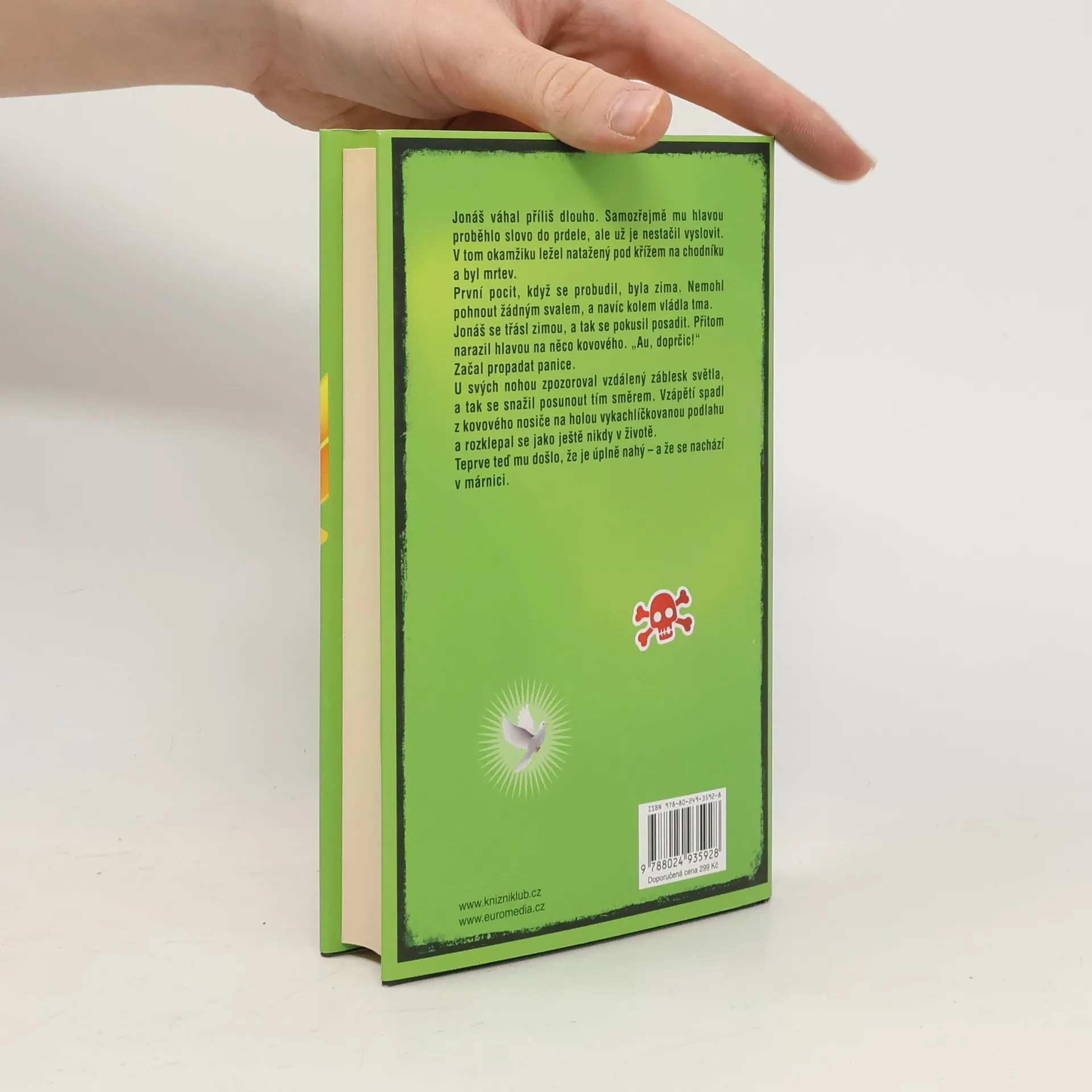 Možná, že z nás budou svatí… Někdy má člověk zkrátka špatný den. Někdy má strašně špatný den. A někdy ho zamáčkne spadlá špička kostelní věže. Přesně to se stane Jonášovi, a tím by mohl vlastně celý příběh skončit. Ale Bůh (starší z nás si pamatují, že je Všemohoucí) má s ním jiné plány – neboť Jonáš je nový Mesiáš. A tak vstane z mrtvých. Lékaři, média a stále rostoucí počet nadšených věřících šílí. A Jonáš? Ten chce vlastně mít jen svůj klid. A v žádném případě netouží dělat zázraky! Ale všechno dopadne úplně jinak… Černočerná komedie s trochou sentimentu a trochou svatozáře od autora bestselleru Smrt a jiné vrcholy mého života.