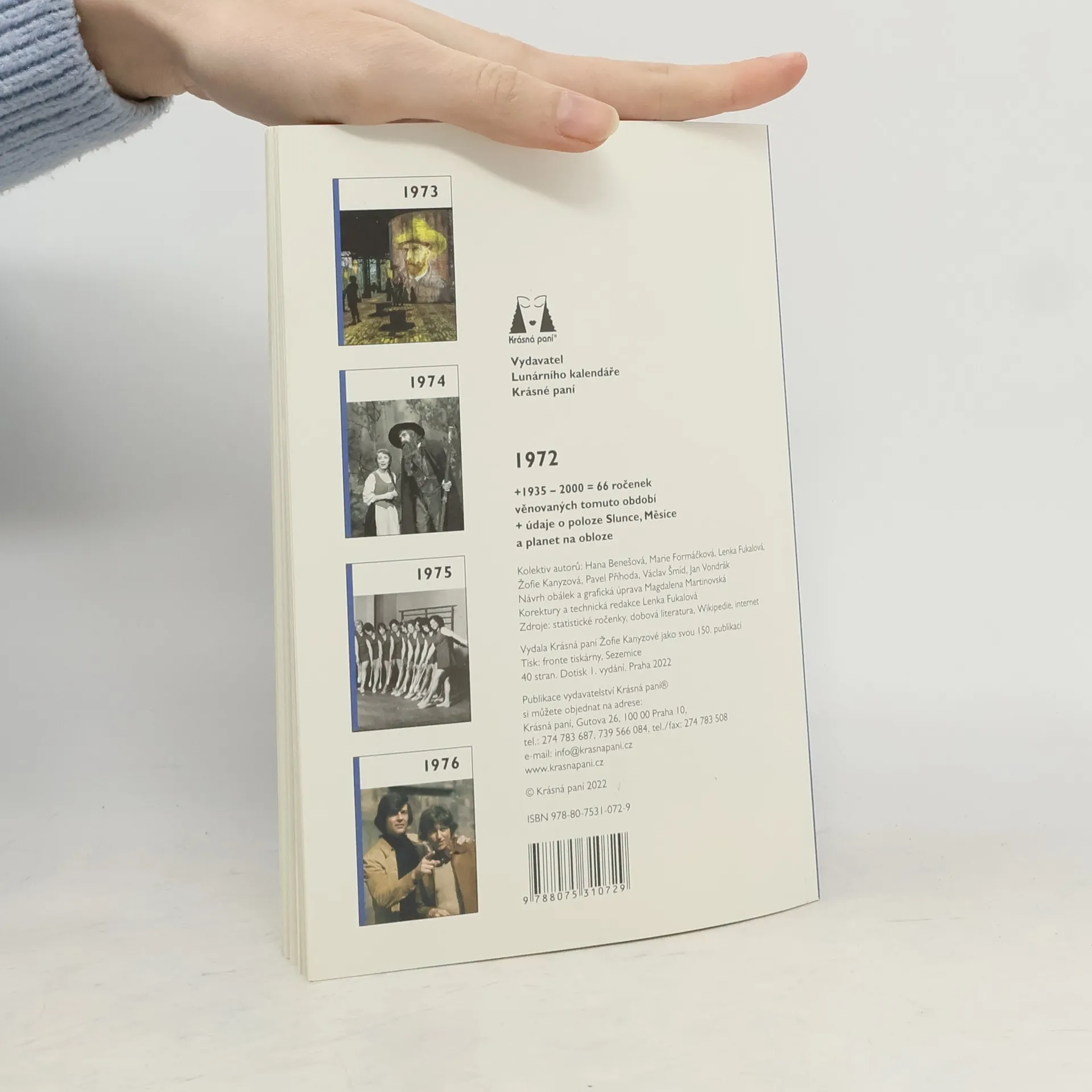Víte, jaké to bylo v roce, kdy jste se narodili? Kolik stál chleba, mléko nebo automobil? Co prožívali vaši rodiče? Co se dělo v kultuře nebo ve sportu? Jaká byla tehdy móda? Na jaký film se chodilo v roce, kdy jste se vdávali či ženili? Jaké rubriky v ročence najdete: Události z domova i ze světa - Kolik co stálo - Móda - Vynálezy - Kultura - Filmy - Architektura - Sport - Kronika - Narození - Kalendářní data - Obloha (údaje o poloze Slunce, Měsíce a planet na obloze)