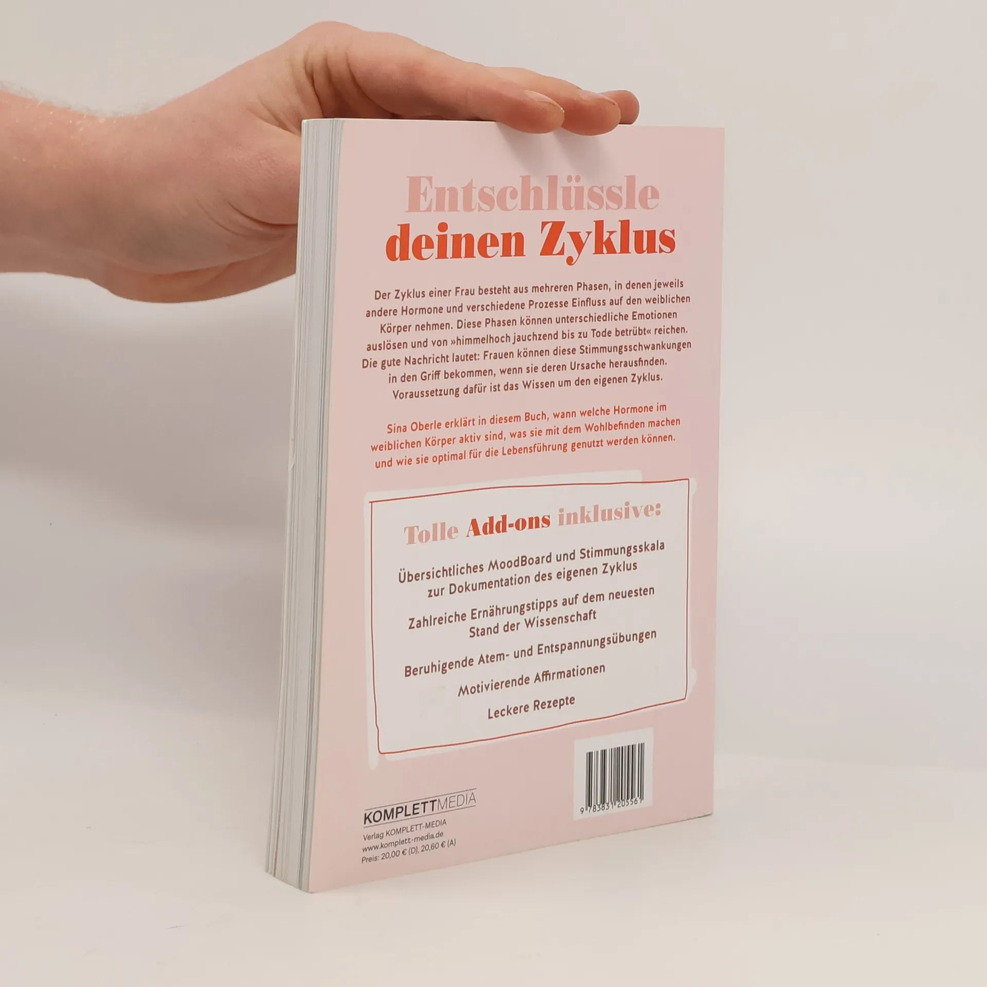 Hat man als Frau schlechte Laune, heißt es: Hast du deine Tage? Dabei besteht der Zyklus aus mehr Phasen als der Menstruation und den Tagen dazwischen. In jedem Lebens- und Zyklusabschnitt nehmen unterschiedliche Hormone Einfluss auf den weiblichen Körper – deshalb gibt es für eine Frau bessere oder schlechtere Zeitpunkte, um eine Gehaltsverhandlung zu führen, ein schwieriges Gespräch zu suchen oder eine große Anschaffung zu tätigen. Diese Stimmungsschwankungen können soweit führen, dass sich Frauen vor allem in der zweiten Zyklushälfte selbst nicht wieder erkennen. Sina Oberle erklärt in ihrem Buch, wann welche Hormone im weiblichen Körper aktiv sind, was sie mit dem Wohlbefinden machen und wie du sie optimal für deine Lebensführung nutzen kannst. Außerdem erklärt sie, wie du deine psychischen Beschwerden vor der Regelblutung in den Griff bekommst.