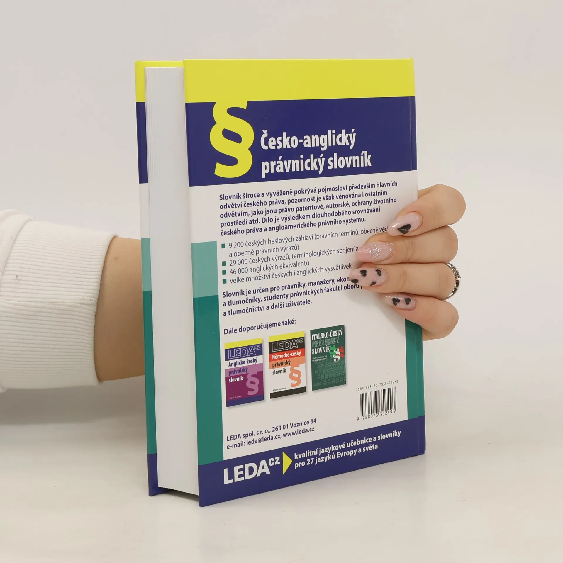 Tento slovník široce a vyváženě pokrývá pojmoslovní hlavních odvětví českého práva pozornost je věnována i ostatním odvětvím, jako jsou právo patentové, autorské, ochrany životního prostředí atd. Dílo je výsledkem dlouhodobého srovnávání českého práva a angloamerického právního systému. Slovník je určen pro manažery, ekonomy, překladatele a tlumočníky, studenty právnických fakult i oboru překladatelství a tlumočnictví a další uživatele. Publikace obsahuje 9.200 českých heslových záhlaví (právních termínů, obecně-vědních a obecně-právních výrazů), 29.000 českých výrazů, terminologických spojení a větných celků, 46.000 anglických ekvivalentů, velké množství českých i anglických vysvětlivek.