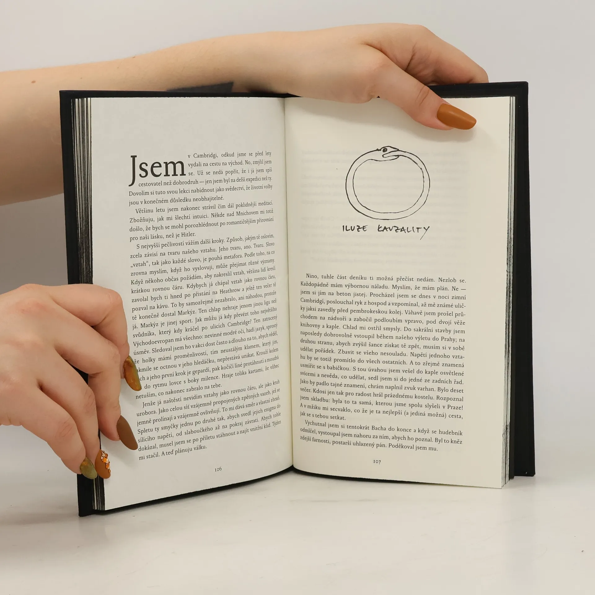 Román vychází ve dvou svazcích (Kniha a Příběh), přičemž je ponecháno na čtenáři, který otevře jako první.Adam, doktorand statistiky v Cambridge, zkoumá spojitosti náhodných neštěstí na celém světě. Namísto kosmického řádu ale začíná nacházet cosi nečekaného: vlastní portréty, staré stovky let. Jak se mu vytrácí hranice mezi vědou, životem a mýtem, další zlověstná varování posilují obavy o rozum i o přítelkyni Ninu...Příběh lásky umírněné punkerky a zavilého matematika se podivuhodně prolíná s dějinami západního způsobu poznávání světa. Dějová nit vede čtenáře z Cambridge přes Prahu do Japonska a Himálaje, jen aby se vrátil do zákrutů své vlastní mysli, kde narazí na podivnou slepou skvrnu, která nám brání zahlédnout svět jinou perspektivou, než k jaké jsme vychováni. Hejno bez ptáků je román o západní civilizaci a její slepé skvrně. A také o zrodu jiného myšlení, které od základu mění, kým můžeme být.