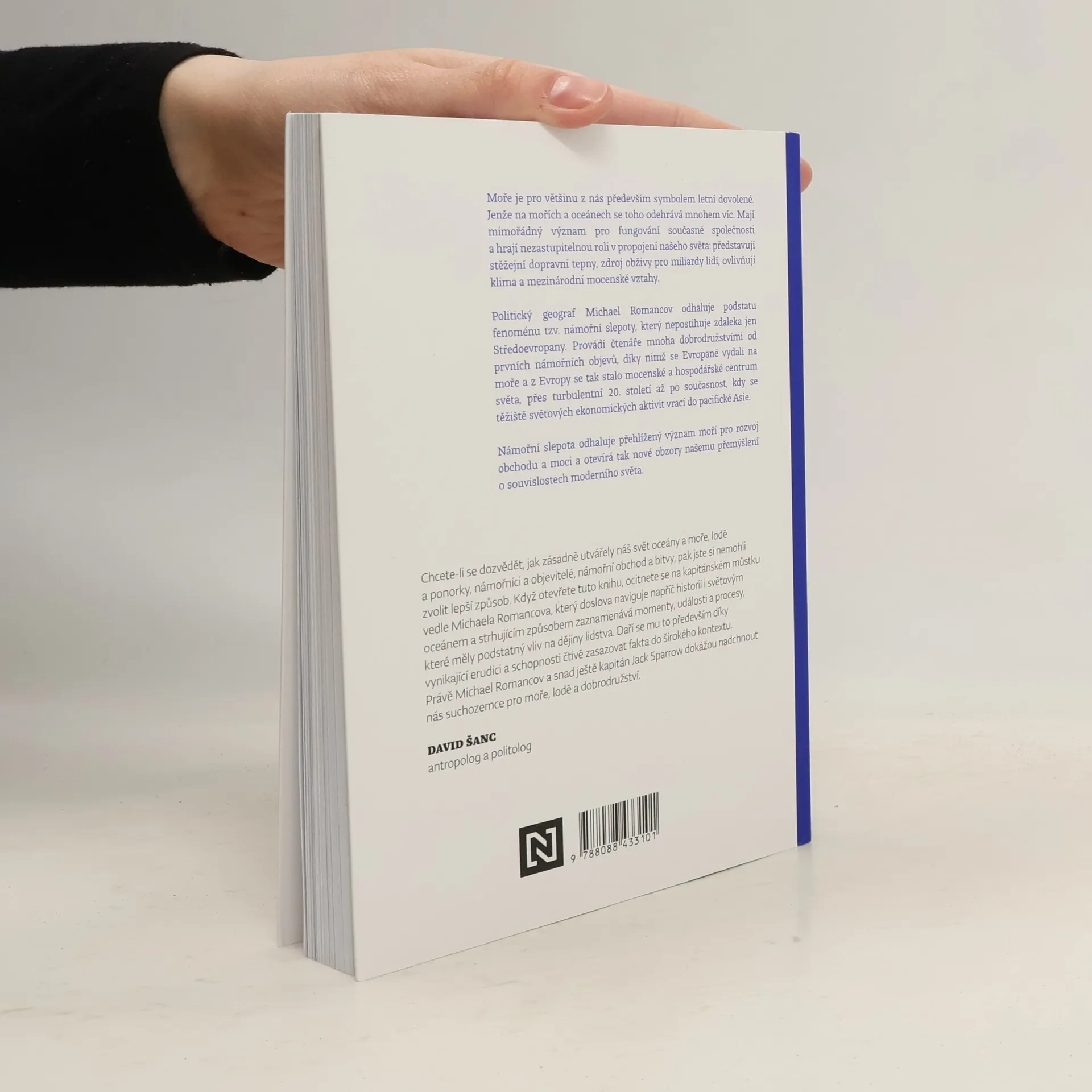 Přehlížený význam moří pro rozvoj obchodu a moci. Moře představuje pro většinu z nás především symbol letní dovolené. Jenže na mořích a oceánech se toho odehrává mnohem víc. Politický geograf Michael Romancov odhaluje podstatu fenoménu tzv. námořní slepoty a provádí čtenáře mnoha dobrodružstvími od prvních námořních objevů až po současnost. Námořní slepota odhaluje přehlížený význam moří pro rozvoj obchodu a moci a otevírá nové obzory našemu přemýšlení o souvislostech moderního světa.