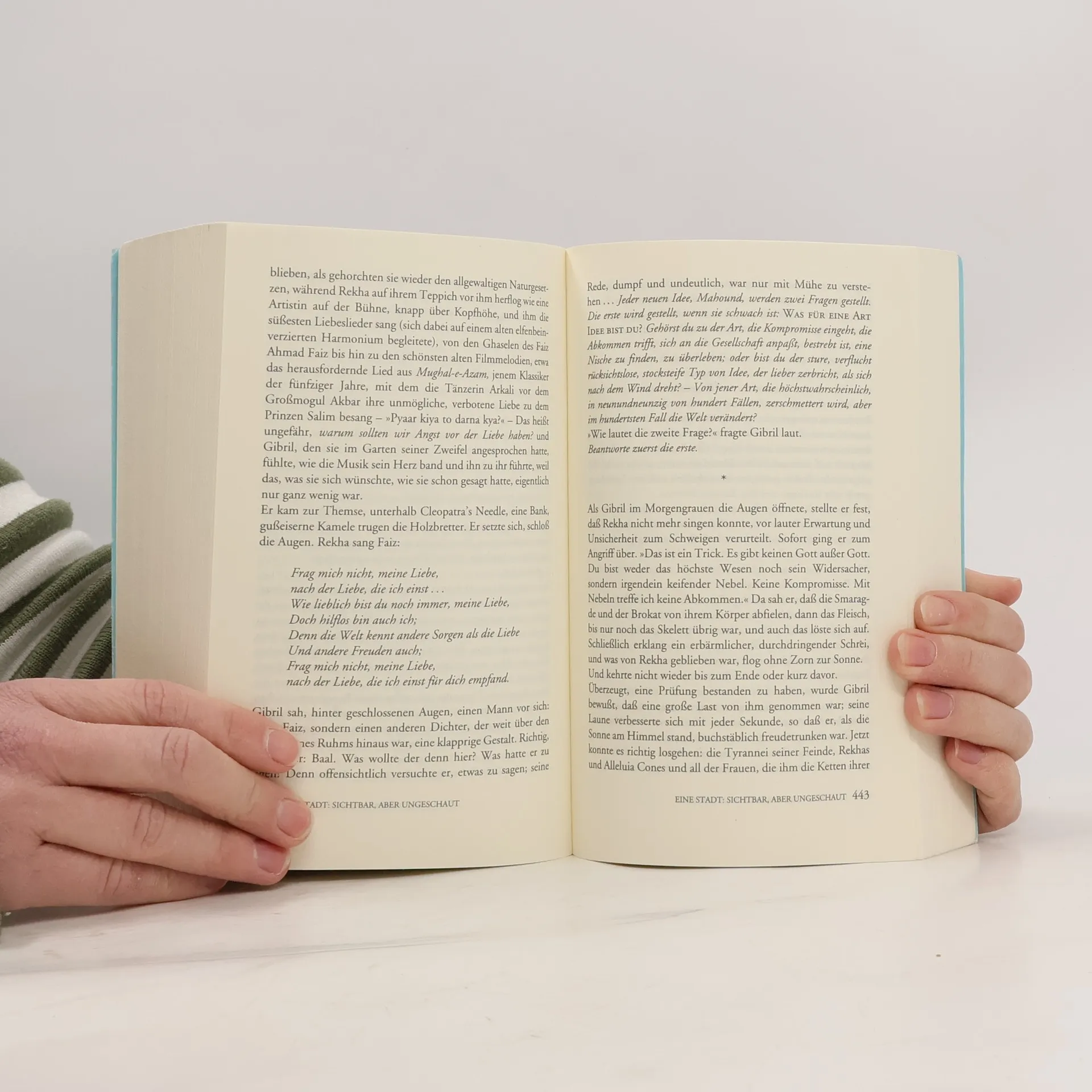 Salman Rushdie erhält den Friedenspreis des Deutschen Buchhandels 2023 »für seine Unbeugsamkeit, seine Lebensbejahung und dafür, dass er mit seiner Erzählfreude die Welt bereichert.« (Aus der Begründung der Jury) Über der englischen Küste wird ein Flugzeug in die Luft gesprengt. Die einzigen Überlebenden sind Gibril Farishta und Saladin Chamcha, zwei indische Schauspieler, die wie durch ein Wunder unversehrt bleiben. Danach geschehen seltsame Dinge mit ihnen: Gibril zeigt immer mehr Ähnlichkeit mit dem Erzengel Gabriel, während sich Saladin, der stets seine Herkunft verleugnete, zu einem Abbild des Teufels entwickelt. Und das ist erst der Beginn einer überwältigenden Odyssee zwischen Gut und Böse, zwischen Fantasie und Realität.»Ein klassisches Stück humanistischer Aufklärungsliteratur – Ratio gegen Mythos, Verstand gegen Glauben.« taz