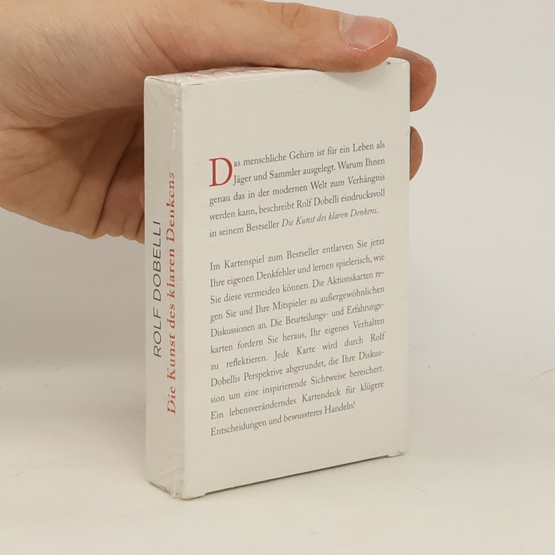 Das menschliche Gehirn ist für ein Leben als Jäger und Sammler ausgelegt. Warum Ihnen genau das in der modernen Welt zum Verhängnis werden kann, beschreibt Rolf Dobelli eindrucksvoll in seinem Bestseller Die Kunst des klaren Denkens. Im Kartenspiel zum Bestseller entlarven Sie jetzt Ihre eigenen Denkfehler und lernen spielerisch, wie Sie diese vermeiden können. Die Aktionskarten regen Sie und Ihre Mitspieler zu außergewöhnlichen Diskussionen an. Die Beurteilungs- und Erfahrungskarten fordern Sie heraus, Ihr eigenes Verhalten zu reflektieren. Jede Karte wird durch Rolf Dobellis Perspektive abgerundet, die Ihre Diskussion um eine inspirierende Sichtweise bereichert. Ein lebensveränderndes Kartendeck für klügere Entscheidungen und bewussteres Handeln!