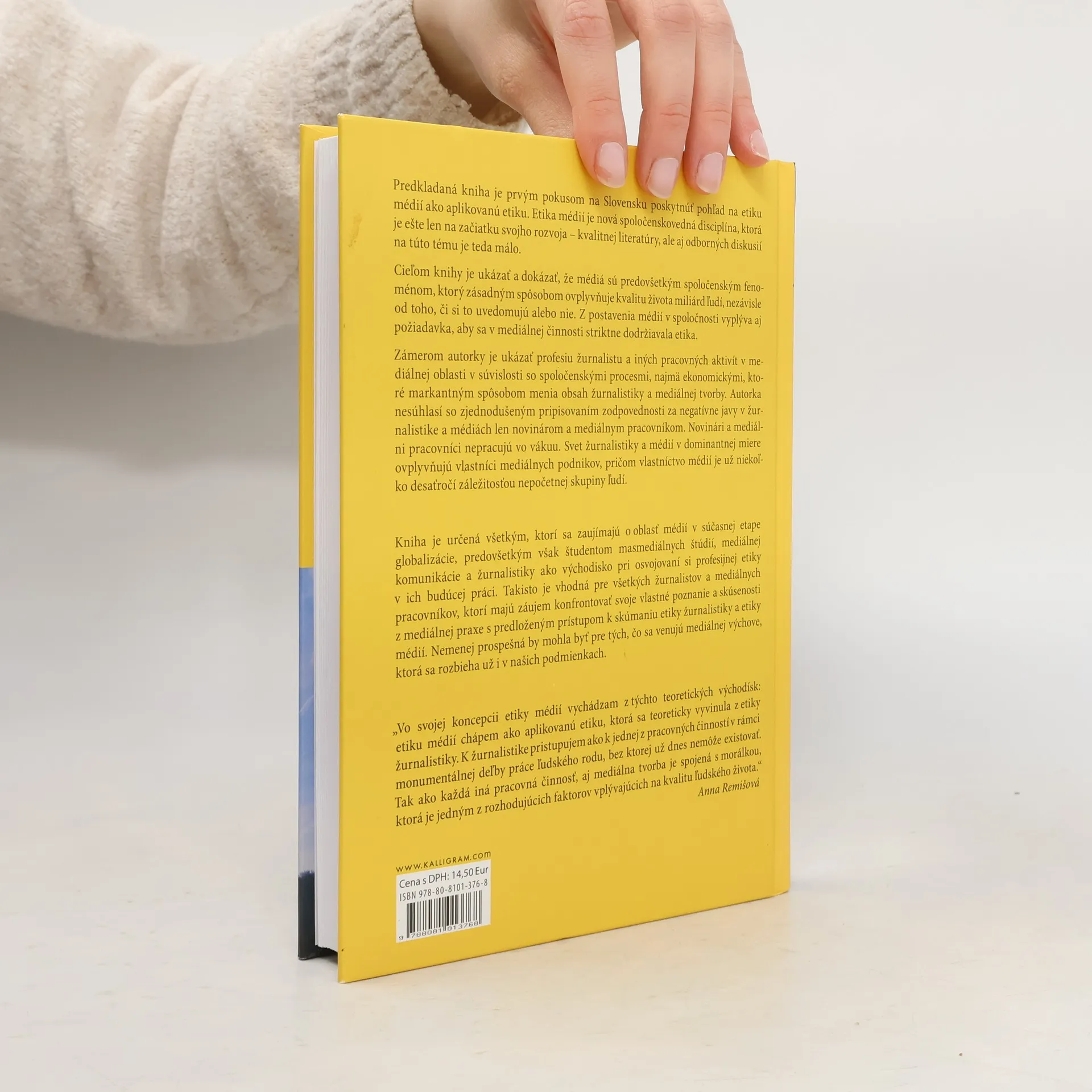 V koncepcii etiky médií autorka vychádza z teoretických východísk aplikovanej etiky, ktorá sa vyvinula z etiky žurnalistiky. Žurnalistika je chápaná ako nevyhnutná pracovná činnosť v rámci deľby práce, spojená s morálkou, ktorá ovplyvňuje kvalitu života. Predkladaná kniha je prvým pokusom na Slovensku poskytnúť pohľad na etiku médií ako aplikovanú etiku. Ide o novú disciplínu, ktorá sa len začína vyvíjať, pričom kvalitná literatúra a odborné diskusie sú stále nedostatočné. Cieľom je ukázať, že médiá majú zásadný vplyv na život miliárd ľudí, a preto je nevyhnutné dodržiavať etiku v mediálnej činnosti. Autorka sa zameriava na profesiu žurnalistu a iné mediálne aktivity v kontexte spoločenských a ekonomických procesov, ktoré menia obsah žurnalistiky. Nesúhlasí so zjednodušeným priraďovaním zodpovednosti za negatívne javy len novinárom, keďže svet médií ovplyvňujú aj vlastníci mediálnych podnikov. Kniha je určená študentom masmediálnych štúdií, mediálnej komunikácie a žurnalistiky, ako aj žurnalistom a mediálnym pracovníkom, ktorí chcú konfrontovať svoje skúsenosti s etickými prístupmi. Je tiež prospešná pre tých, ktorí sa zaoberajú mediálnou výchovou.