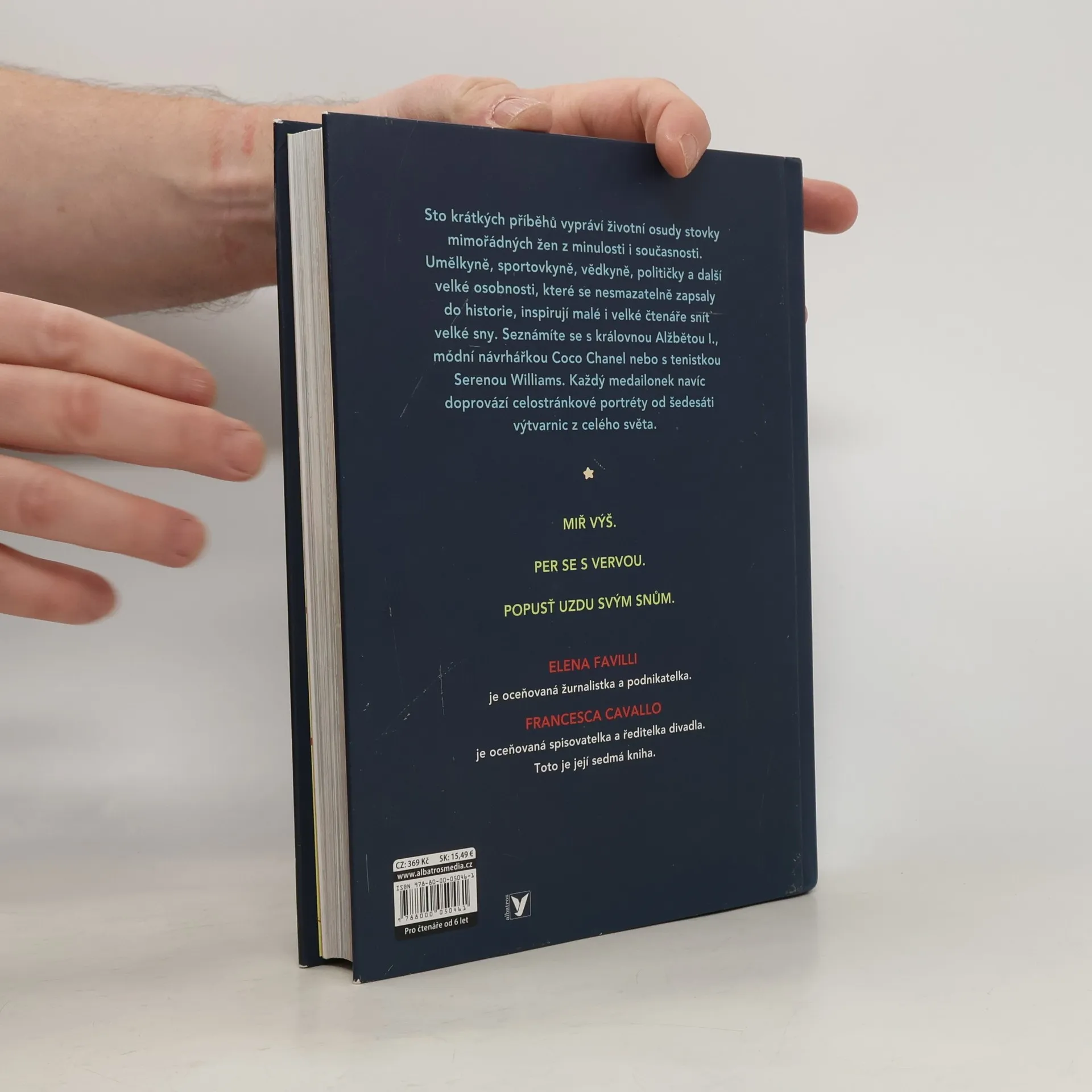 "Sněte, ještě než půjdete spát! Světový bestseller představuje životy inspirativních žen napříč dějinami." Sto krátkých příběhů vypráví životní osudy stovky mimořádných žen z minulosti i současnosti. Umělkyně, sportovkyně, vědkyně, političky a další velké osobnosti, které se nesmazatelně zapsaly do historie, inspirují malé i velké čtenáře snít velké sny. Seznámíte se s královnou Alžbětou I., módní návrhářkou Coco Chanel nebo s tenistkou Serenou Williams. Každý medailonek navíc doprovází celostránkové portréty od šedesáti výtvarnic z celého světa.