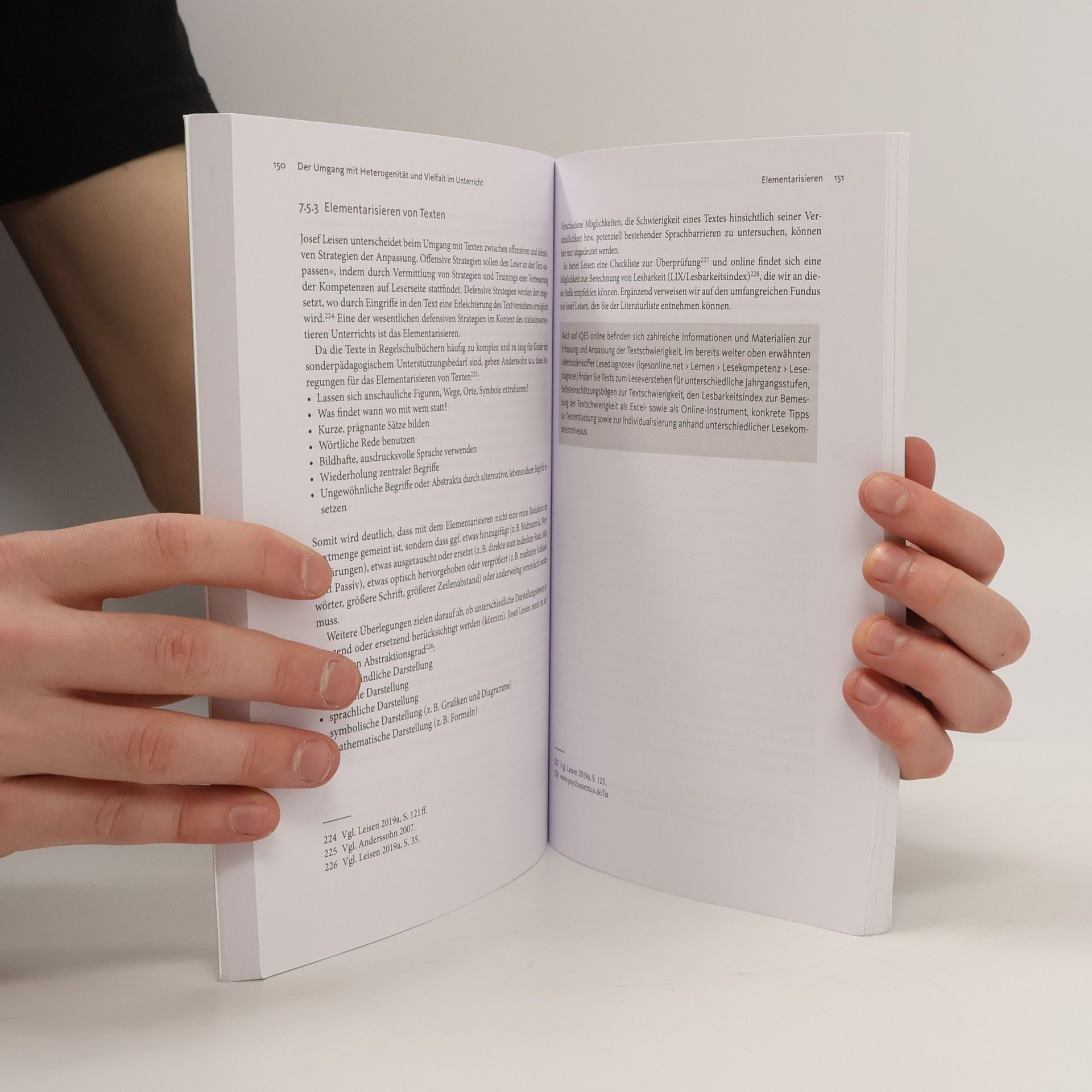 Lehrkräfte fühlen sich im Umgang mit Heterogenität und Inklusion im Alltag oft überfordert. Während viele Forderungen und Vorschläge zur Umgestaltung des Schulalltags praxisfern wirken, setzt dieses Buch beim konkreten Unterricht an. Es legt den Schwerpunkt auf Verfahren und Prinzipien des Kooperativen Lernens, sodass Lehrkräfte ihr Methoden-Spektrum erweitern und mit diesem Handwerkszeug »standortbezogener Inklusion« in der Unterrichtspraxis begegnen können. Die Autor/innen widmen sich ausführlich zentralen Fragen und Chancen im Rahmen des Gemeinsamen Lernens und geben fundierte Tipps. Darüber hinaus bieten sie Anregungen für aktivierende Klassenführung,Klassenlehrertätigkeiten, Binnendifferenzierung und die schulische Entwicklung hin zu besseren Teamstrukturen. Die Refl exionsangebote, Beispiele und Anleitungen, die in das Buch eingebunden sind, unterstützen die Weiterentwicklung des eigenen Unterrichts – hinzu Merkmalen guten Unterrichts aus der Lehr-Lernforschung, die letztlich allen Lernenden zugutekommen.