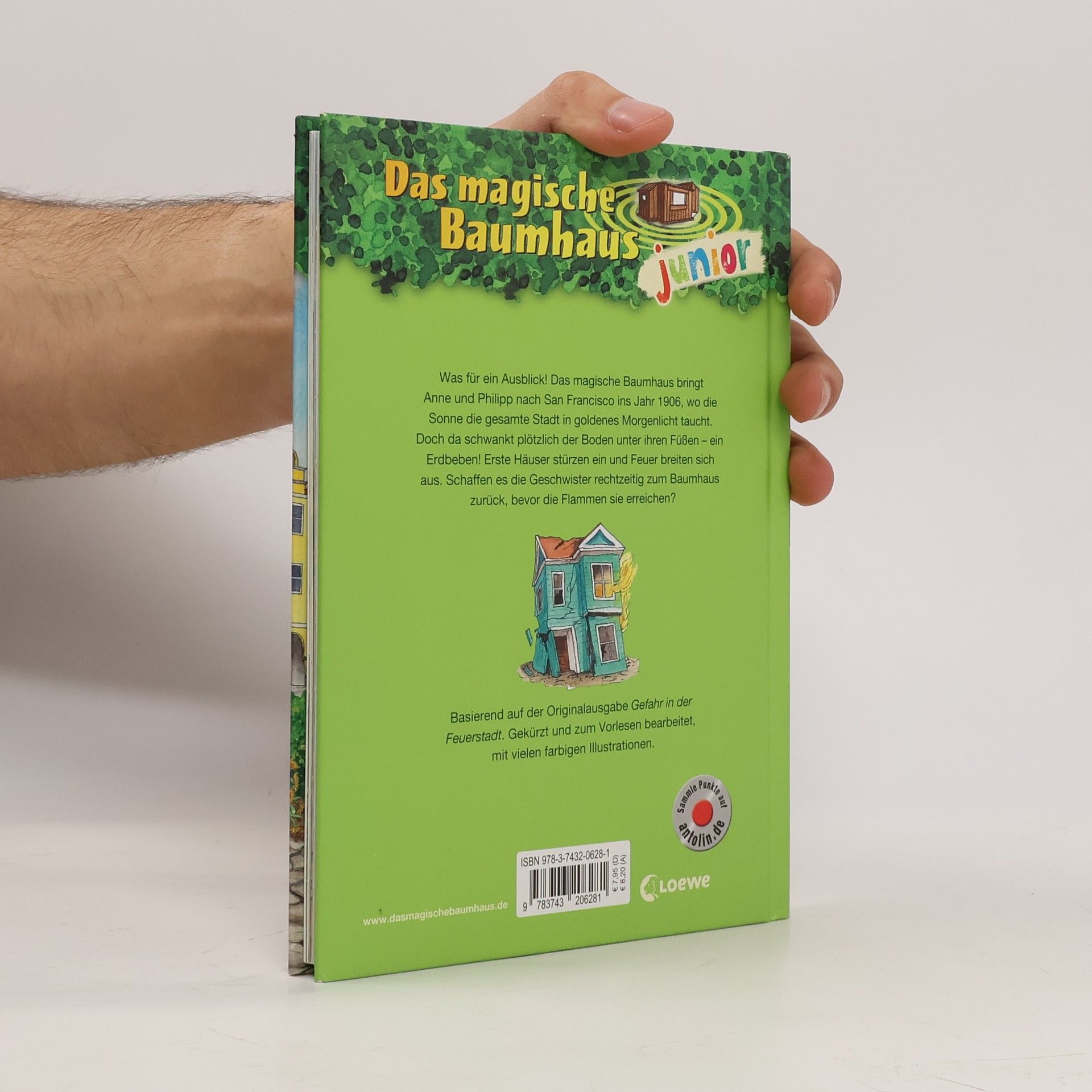 Das Buch ist bei deiner Buchhandlung vor Ort und bei vielen Online-Buchshops erhältlich! + Bücher, die Kinder gerne lesen wollen + Beliebte Themen: Abenteuer, Tiere und fremde Länder + Hochwertiges Hardcover + Mit vielen Illustrationen + Bereits über 10 Millionen verkaufte Bücher der Baumhaus-Reihe + Ausgewogenes Text-Bild-Verhältnis + Große Schrift + Kurze Kapitel + Was für ein Ausblick! Das magische Baumhaus bringt Anne und Philipp nach San Francisco ins Jahr 1906, wo die Sonne die gesamte Stadt in goldenes Morgenlicht taucht. Doch da wackelt plötzlich der Boden unter ihren Füßen – ein Erdbeben! Erste Häuser stürzen ein und Feuer breiten sich aus. Schaffen es die Geschwister rechtzeitig zum Baumhaus zurück, bevor die Flammen es erreichen? Die beliebte Kinderbuch-Reihe von Bestsellerautorin Mary Pope Osborne zum Vorlesen und Selberlesen. Die Geschwister Anne und Philipp reisen mit dem magischen Baumhaus durch die Zeit, entdecken ferne Länder, faszinierende Tiere und erleben spannende Abenteuer. Mit vielen bunten Bildern, besonders für Kinder ab 6 Jahren geeignet. Basierend auf der Originalausgabe Das magische Baumhaus - Gefahr in der Feuerstadt. Gekürzt und zum Vorlesen bearbeitet, mit vielen farbigen Illustrationen. Alle Bände der erfolgreichen Reihe sind auch bei Antolin gelistet.
