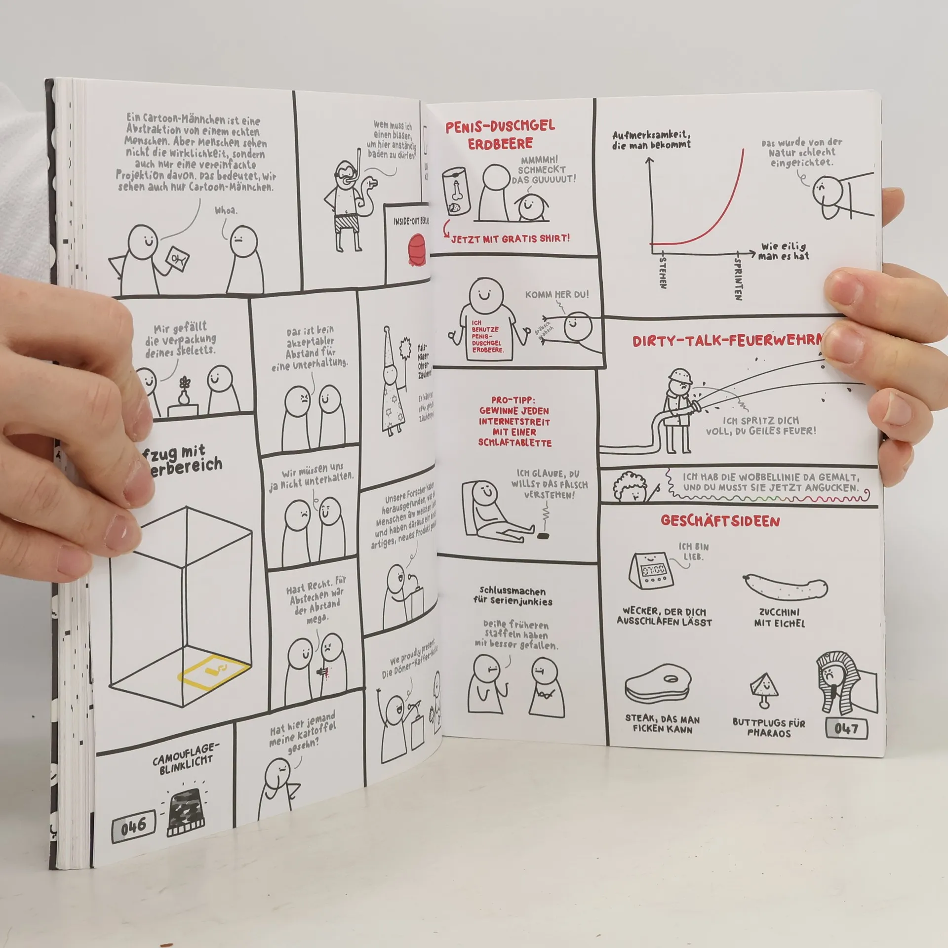 Dieses mittelgroße Buch wird Ihr Leben ein mittelgroßes bisschen verändern, und das ist viel! Ein Wuselbuch zum Stöbern, Weglegen, Suchen, Zeigen, Dingedraufstellen und Drüberstolpern, für Menschen in beliebigem Alter. Dieses Buch möchte nicht zu viel versprechen, aber es ist mindestens mega. Darin enthalten sind lustige Comics, Schaubilder über Prokrastination, wiederkehrende Figuren wie "Gisela, das produktive Huhn". Außerdem gibt es darin Ideen für neue, nie dagewesene Tiere, niedliche Explosionen (z.B. „Kawauz“) und kreative Mitmachübungen zum kreativen Mitmachen.