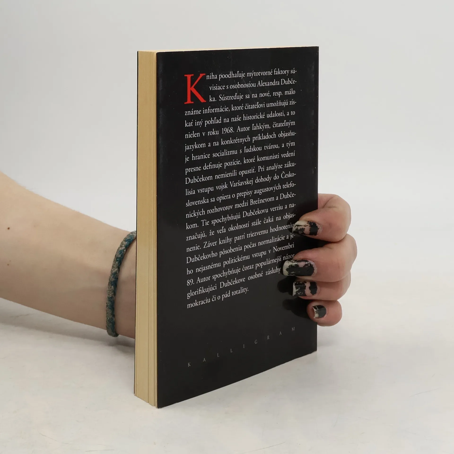 Kniha poodhaľuje mýtotvorné faktory súvisiace s osobnosťou Alexandra Dubčeka. Sústreďuje sa na nové, resp. málo známe informácie, ktoré čitateľovi umožňujú získať iný pohľad na naše historické udalosti, a to nielen v roku 1968. Autor ľahkým, čitateľným jazykom a na konkrétnych príkladoch objasňuje hranice socializmu s ľudskou tvárou, a tým presne definuje pozície, ktoré komunisti vedení Dubčekom nemienili opustiť. Pri analýze zákulisia vstupu vojsk Varšavskej dohody do Československa sa opiera o prepisy augustových telefonických rozhovorov medzi Brežnevom a Dubčekom. Tie spochybňujú Dubčekovu verziu a naznačujú, že veľa okolností stále čaká na objasnenie. Záver knihy patrí triezvemu hodnoteniu Dubčekovho pôsobenia počas normalizácie a jeho nejasnému politickému vstupu v Novembri 89. Autor spochybňuje čoraz populárnejší názor glorifikujúci Dubčekove osobné zásluhy o demokraciu či o pád totality. (politický profil Alexandra Dubčeka)