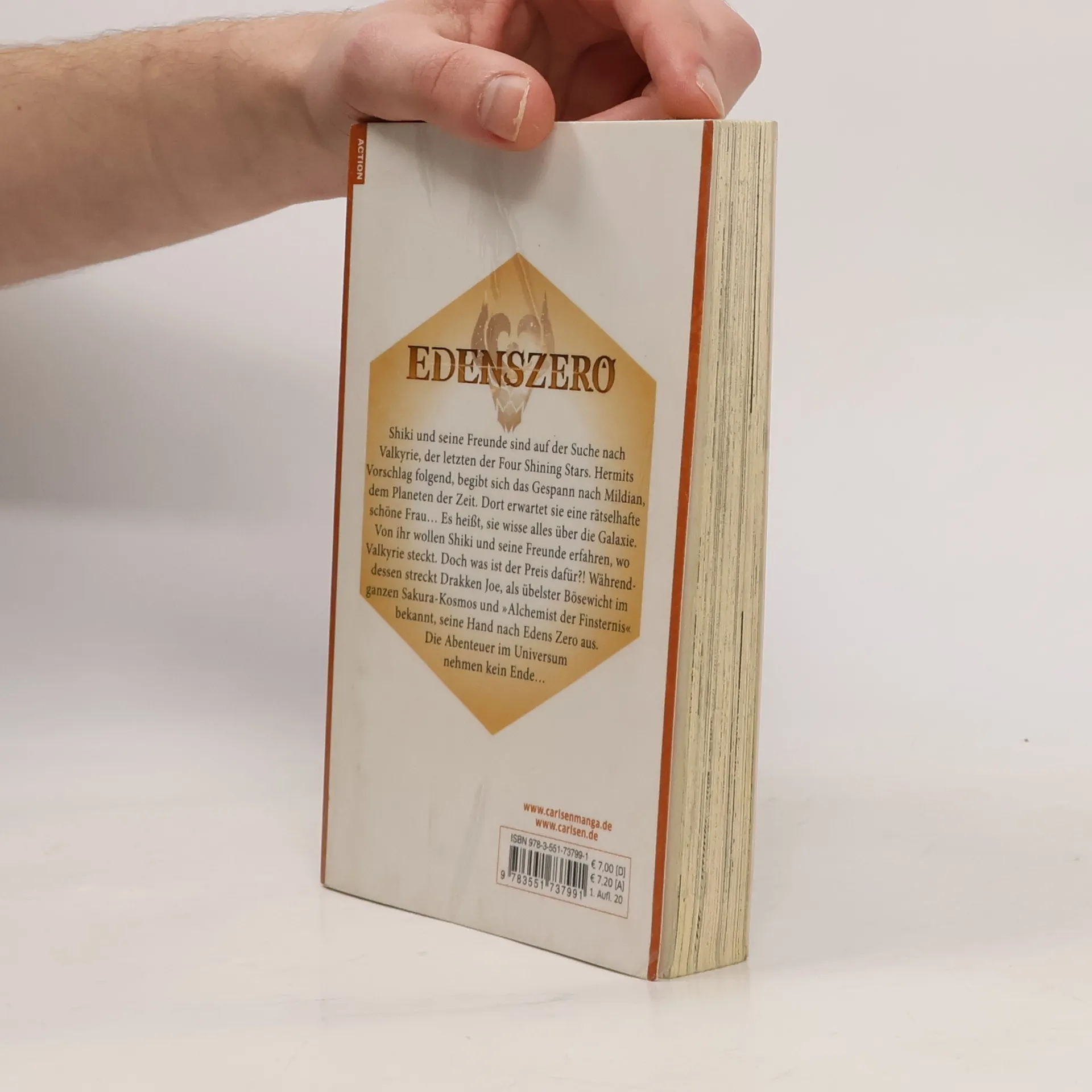 Shiki und seine Freunde sind auf der Suche nach Valkyrie, der letzten der Four Shining Stars. Hermits Vorschlag folgend, begibt sich das Gespann nach Mildian, dem Planeten der Zeit. Dort erwartet sie eine rätselhafte schöne Frau… Es heißt, sie wisse alles über die Galaxie. Von ihr wollen Shiki und seine Freunde erfahren, wo Valkyrie steckt. Doch was ist der Preis dafür?! Währenddessen streckt Drakken Joe, als übelster Bösewicht im ganzen Sakura-Kosmos und »Alchemist der Finsternis« bekannt, seine Hand nach Edens Zero aus. Die Abenteuer im Universum nehmen kein Ende… Was Shiki und seine Freunde erwartet, ist vollkommen unvorhersehbar!