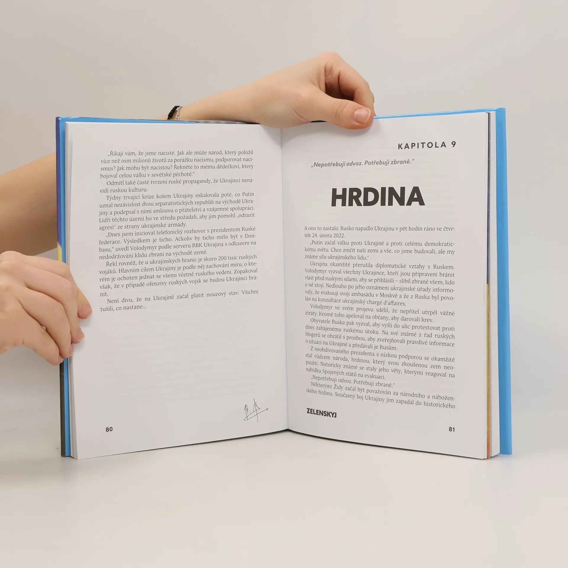 Čtvrteční ráno, 24. únor 2022, přineslo zásadní změnu, když Rusko pod vedením Putina zaútočilo na Ukrajinu. Svět našel nového hrdinu – Volodymyra Zelenského, prezidenta Ukrajiny, který se z komika a herce stal symbolem odporu. Před vstupem do politiky byl známý z televizních soutěží a populárního seriálu Sluha národa, kde kritizoval ukrajinské poměry. Jeho nečekané zvolení prezidentem v roce 2019 vyvolalo skeptické reakce, ale Zelenskyj překvapil svou odvahou a schopnostmi moderního státníka. Od začátku války se stal lídrem, který dodával morální podporu svému lidu a vojákům, přičemž odmítl opustit zemi, když mu byla nabídnuta evakuace. Jeho prohlášení „Boj se odehrává tady. Potřebuju munici, ne odvoz“ ukazuje jeho odhodlání bránit Ukrajinu. Každodenně mobilizoval podporu nejen doma, ale i v zahraničí, přičemž apeloval na západní spojence, aby si uvědomili, že válka na Ukrajině ohrožuje i jejich bezpečnost. Tato kniha zachycuje nejen příběh Zelenského jako hrdiny, ale i velké válečné příběhy, které formují současný svět.