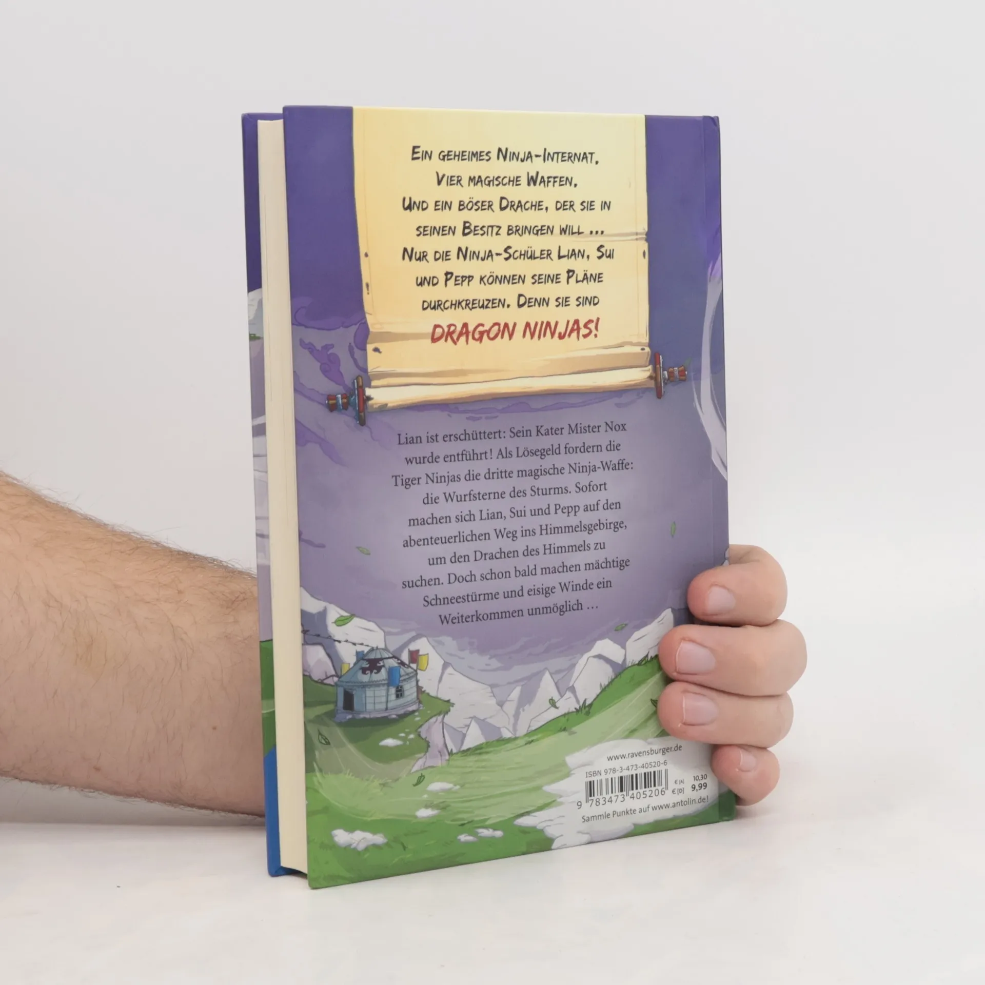 Diese Ninjas sind drachenstark!Lian ist Sein Kater Mister Nox wurde entführt! Als Lösegeld fordern die Tiger Ninjas, dass Lian ihnen die dritte magische Ninja-Waffe die Wurfsterne des Sturms. Ohne zu zögern, machen sich Lian, Sui und Pepp auf die Suche nach dem Drachen des Himmels, der über die Wurfsterne wacht. Ihr Weg führt sie ins Himmelsgebirge – doch dort toben mächtige Schneestürme und machen ein Weiterkommen unmöglich …*