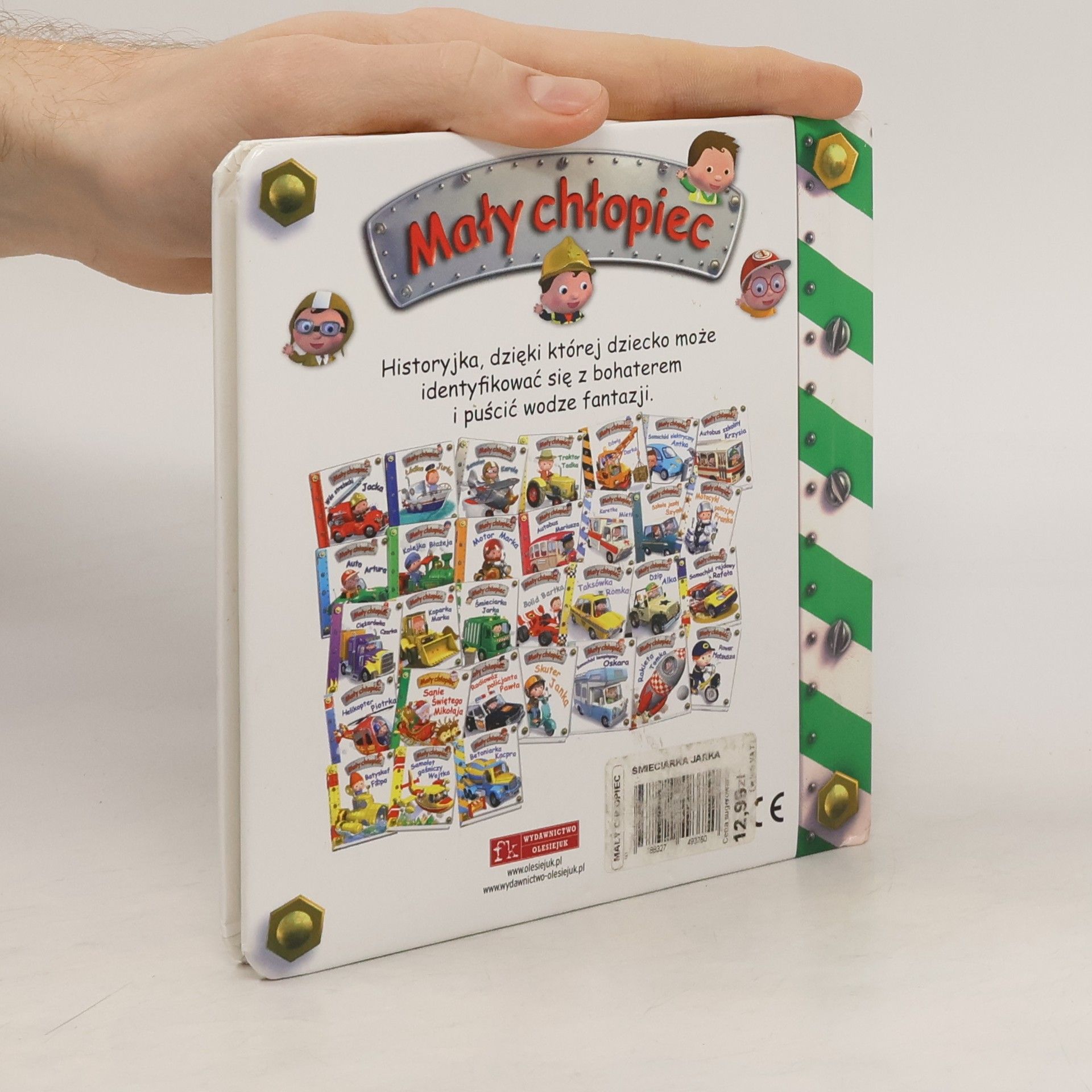 Historyjka, dzięki której dziecko może identyfikować się z bohaterem i puścić wodze swojej fantazji. Na końcu tej ślicznie ilustrowanej książeczki mały Czytelnik znajdzie zagadki oraz miejsce na wklejenie własnej fotografii teraz i On może jeździć śmieciarką Jarka! Na serię Mały chłopiec składają się m.in. tytuły: Wóz strażacki Jacka, Koparka Marka, Łódka Jurka, Samolot Karola, Auto Artura, Kolejka Błażeja, Autobus Mariusza, Śmieciarka Jacka, Traktor Tadka i Motor Marka.