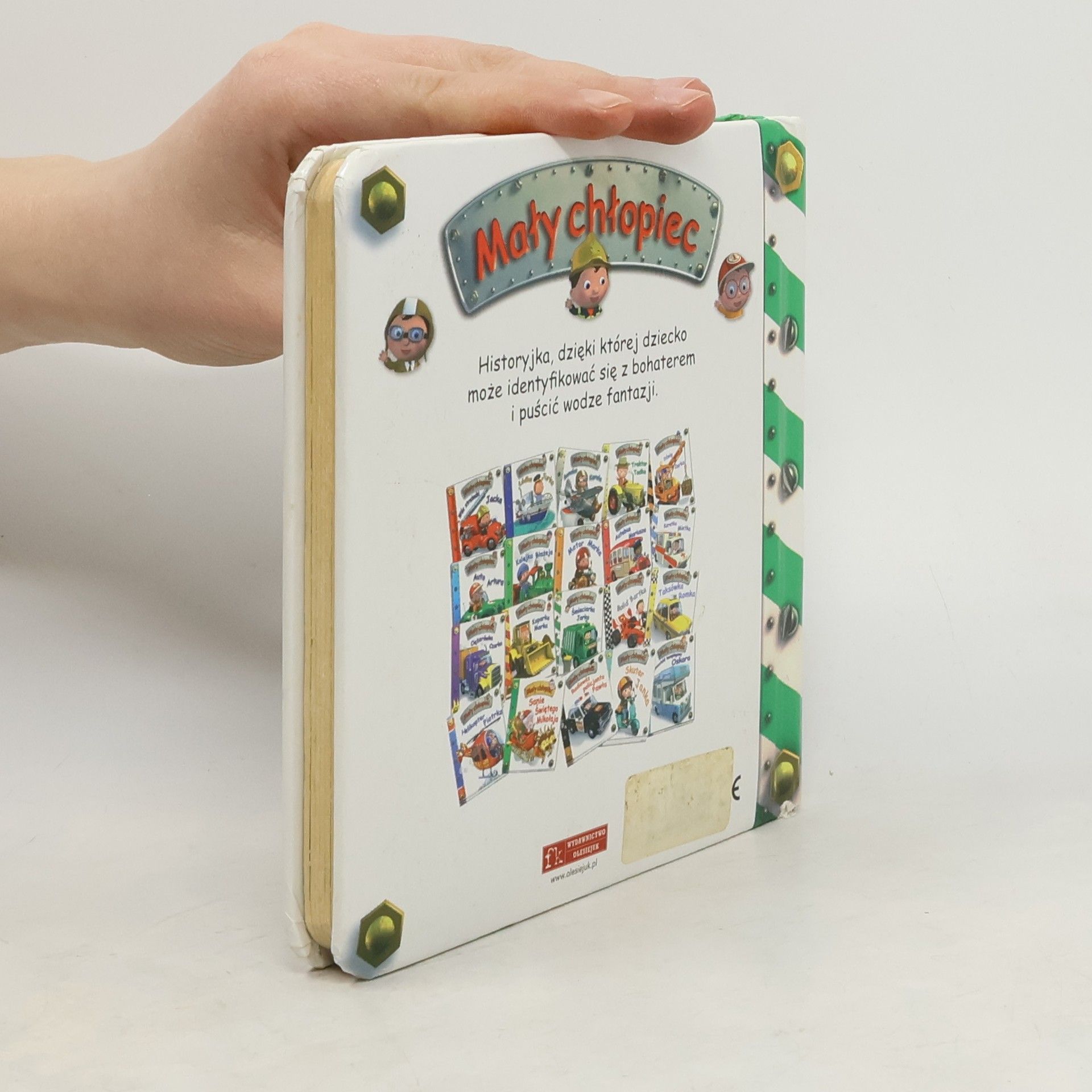 Historyjka, dzięki której dziecko może identyfikować się z bohaterem i puścić wodze swojej fantazji. Na końcu tej ślicznie ilustrowanej książeczki mały Czytelnik znajdzie zagadki oraz miejsce na wklejenie własnej fotografii teraz i On może jeździć śmieciarką Jarka! Na serię Mały chłopiec składają się m.in. tytuły: Wóz strażacki Jacka, Koparka Marka, Łódka Jurka, Samolot Karola, Auto Artura, Kolejka Błażeja, Autobus Mariusza, Śmieciarka Jacka, Traktor Tadka i Motor Marka.