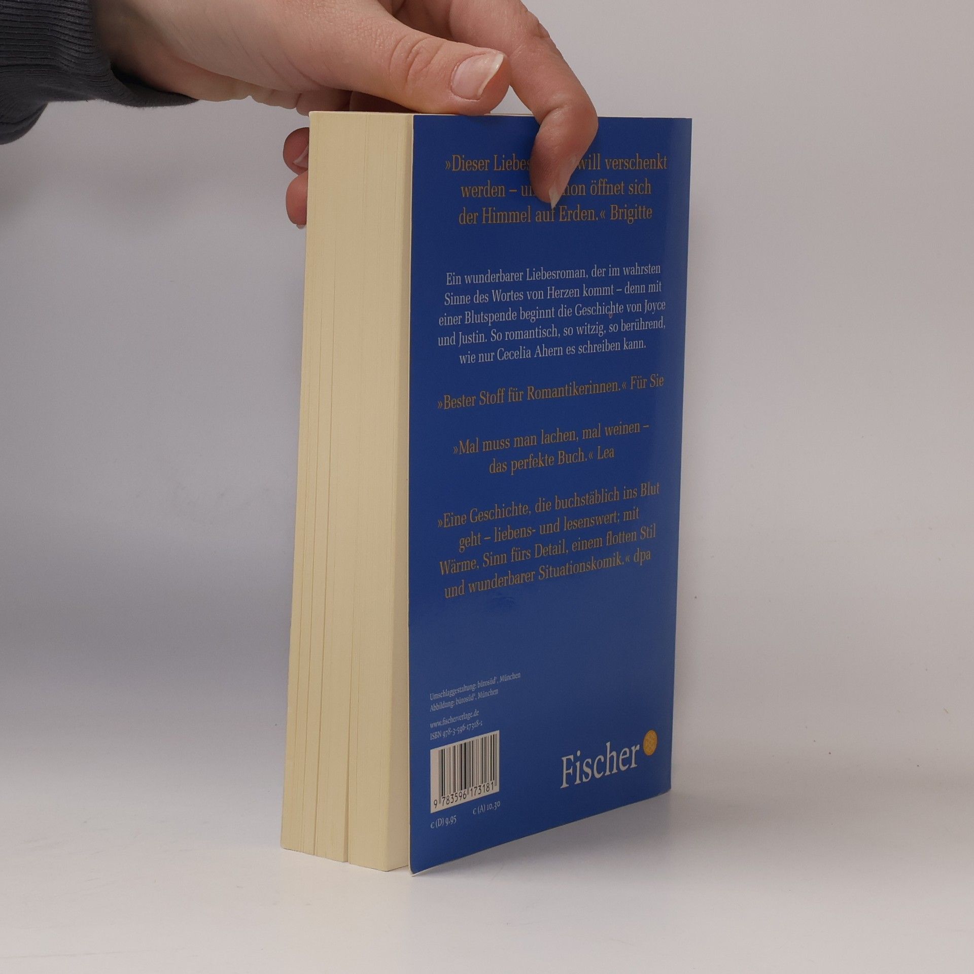 Ein wunderbarer Liebesroman, der im wahrsten Sinne des Wortes von Herzen kommt – denn mit einer Blutspende beginnt die Geschichte von Joyce und Justin. So romantisch, so witzig, so berührend, wie nur Cecelia Ahern es schreiben kann. Joyce überlebt nur knapp einen Unfall – und weiß, dass sie ab jetzt ganz anders leben will. Doch irgendetwas ist seltsam: Sie kann auf einmal fremde Sprachen und erinnert sich an Dinge, die sie gar nicht erlebt habt. Justin ist als Gastdozent in Dublin. Er ist verdammt einsam, würde das aber nie zugeben. Als er eine junge Frau trifft, die ihm ungewöhnlich bekannt vorkommt, ist er verwirrt – er kommt einfach nicht drauf, woher er sie kennen könnte … »Mal muss man lachen, mal weinen – das perfekte Buch.« Lea »Dieser Liebesroman will verschenkt werden – und schon öffnet sich der Himmel auf Erden.« Brigitte
