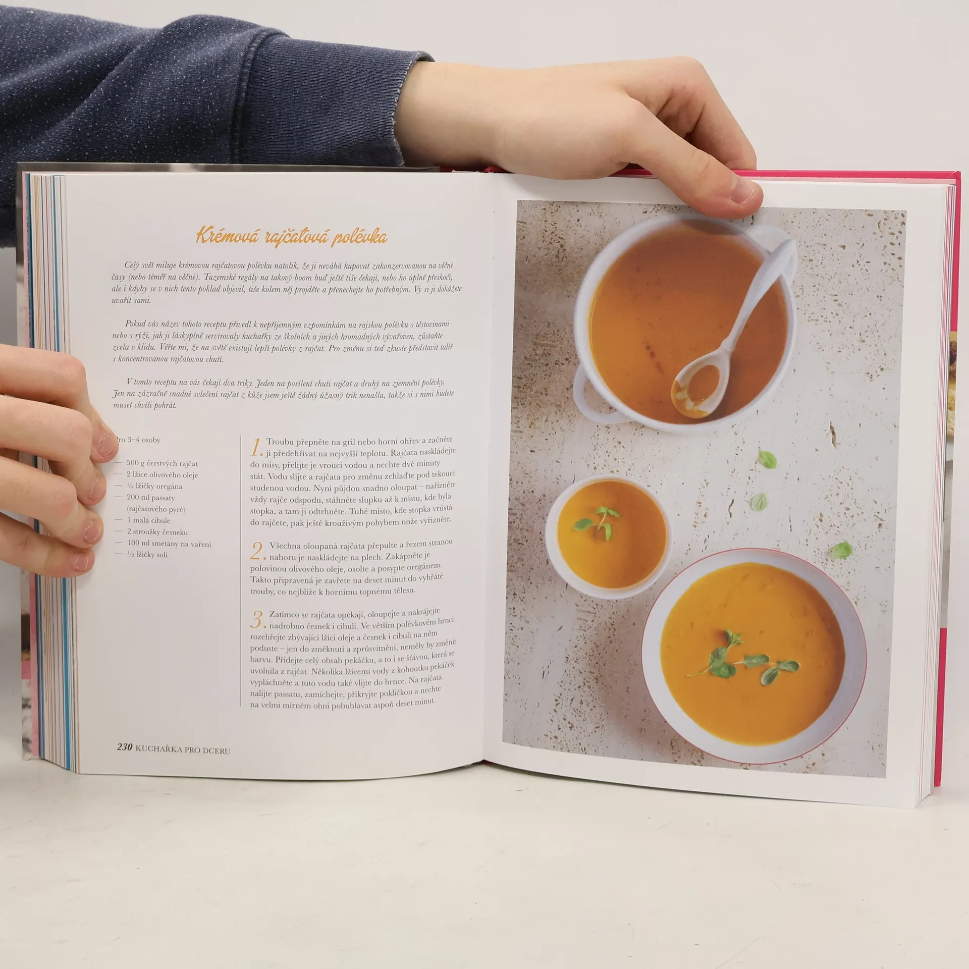 155 vyzkoušených receptů, jak uspět hned napoprvé. Jak se naučit vařit dobře a s chutí? Jak překonat nástrahy složitějších jídel a dosáhnout dokonalosti? Tohle všechno vás Kuchařka pro dceru naučí tak, jak by vás to naučila vaše matka, kdyby na to měla čas. Tahle knížka je jiná než ostatní kuchařky pro začátečníky, je psaná vtipně a s láskou. Nepřikazuje, nehemží se nejasnými pojmy, nezdráhá se přesně vysvětlovat, co se děje v hrnci, a ochotně upozorní na časté chyby. Naučí vás o vaření přemýšlet, vezme vás kamarádsky za ruku a pomůže odhalit kuchařská tajemství. Díky ní uvaříte dokonalé jídlo hned napoprvé. Zvládnete s ní vše, co budete potřebovat – od špaget po svíčkovou. Je to jediná kuchařka na trhu, kterou se můžete provařit od začátku až do konce, jeden recept za druhým, a v mezičase ji číst jako napínavou kuchařskou detektivku.