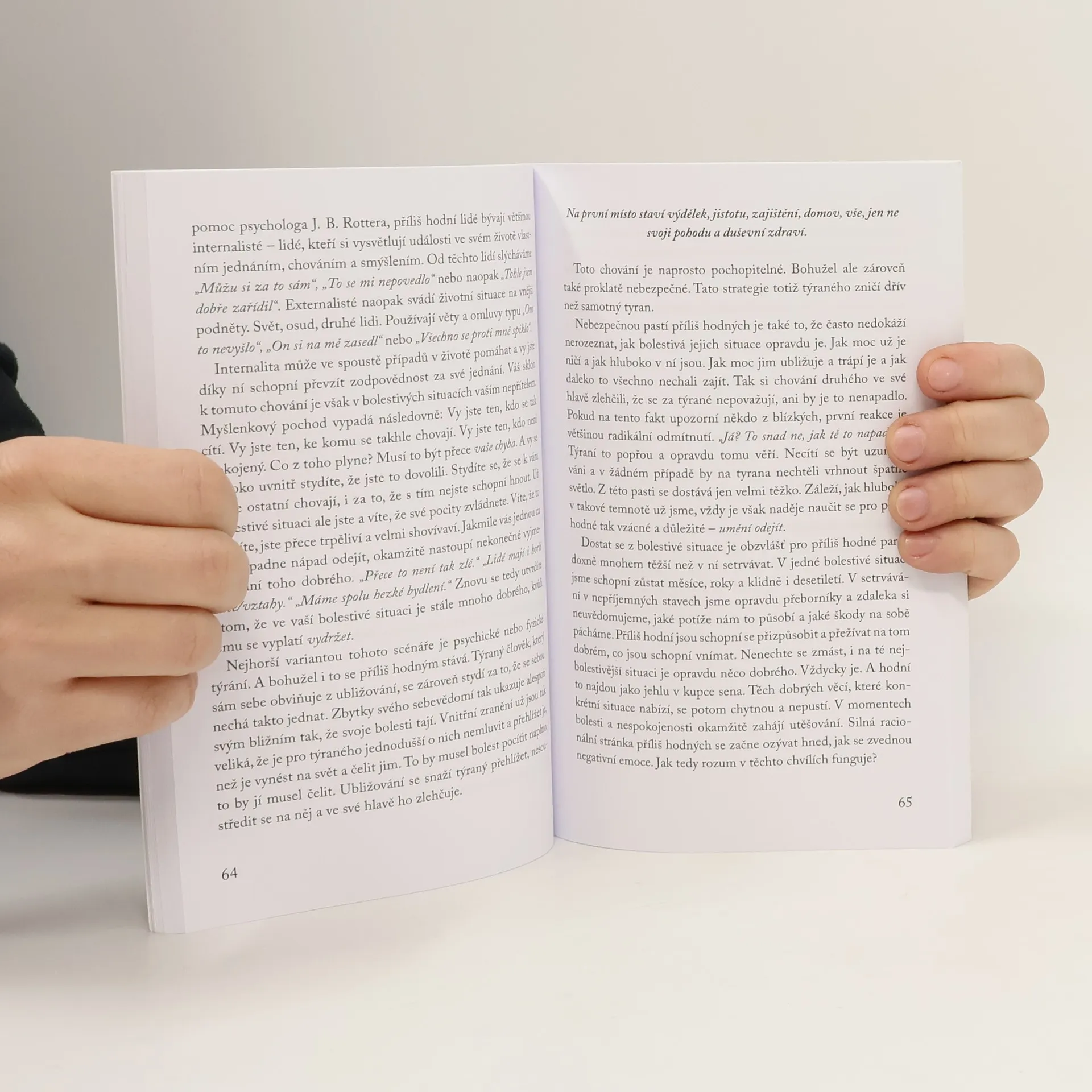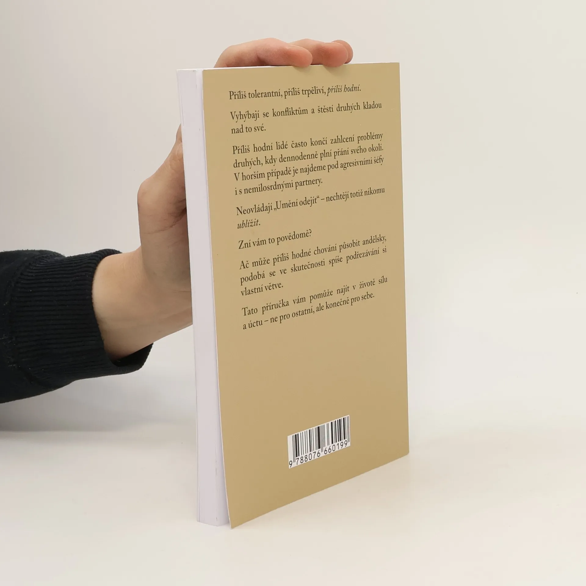Příliš tolerantní, příliš trpěliví, příliš hodní. Vyhýbají se konfliktům a štěstí druhých kladou nad to své. Příliš hodní lidé často končí zahlcení problémy druhých, kdy dennodenně plní přání svého okolí. V horším případě je najdeme pod agresivními šéfy i s nemilosrdnými partnery. Neovládají „Umění odejít“ – nechtějí totiž nikomu ublížit. Zní vám to povědomě? Ač může příliš hodné chování působit andělsky, podobá se ve skutečnosti spíše podřezávání si vlastní větve. Tato příručka vám pomůže najít v životě sílu a úctu – ne pro ostatní, ale konečně pro sebe.