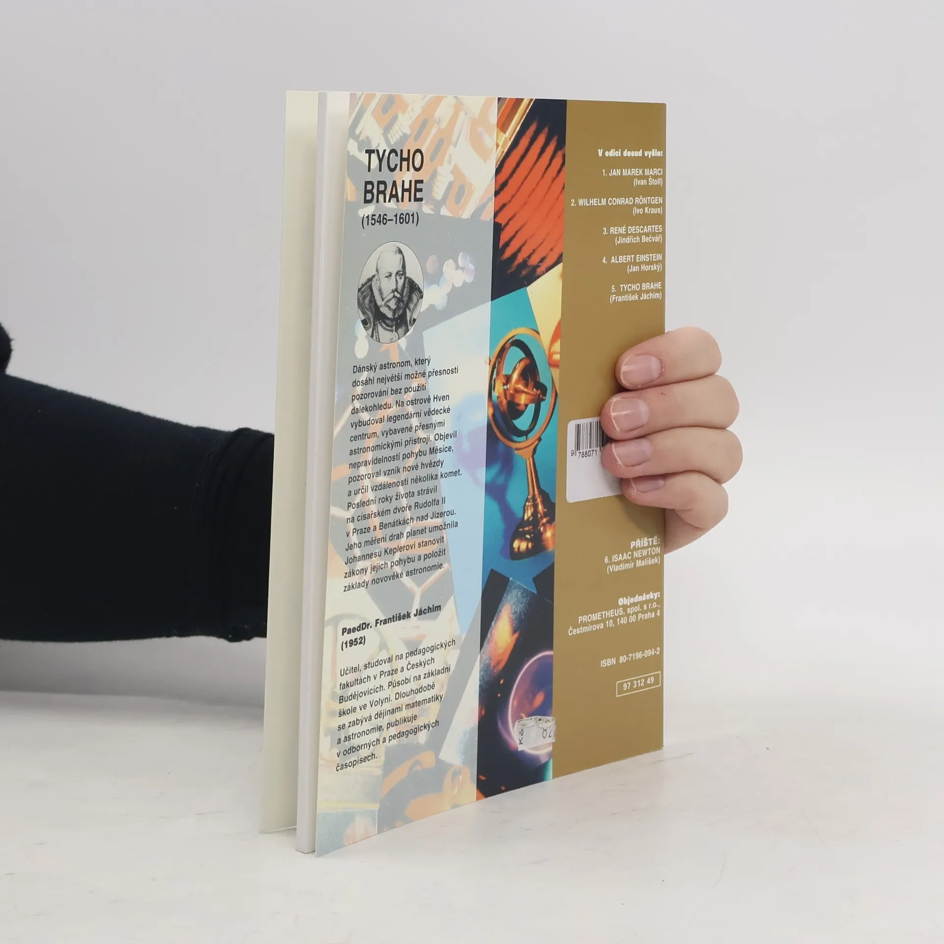 Stručný životopis dánského astronoma Tychona Brahe. Brahe byl svědomitý, přesný a neúnavný pozorovatel. Neznal dalekohled, používal svůj bystrý zrak a zaměřovací přístroje, které sám navrhoval i konstruoval. Výsledky Brahových pozorování byly velmi cenné pro Johanna Keplera, který je po Brahově smrti zpracoval v tzv. Rudolfínských tabulkách (Astronomické tabulky poloh planet). Přehled významných událostí v životě Tychona Brahe a jeho hlavní díla. 1. vydání.