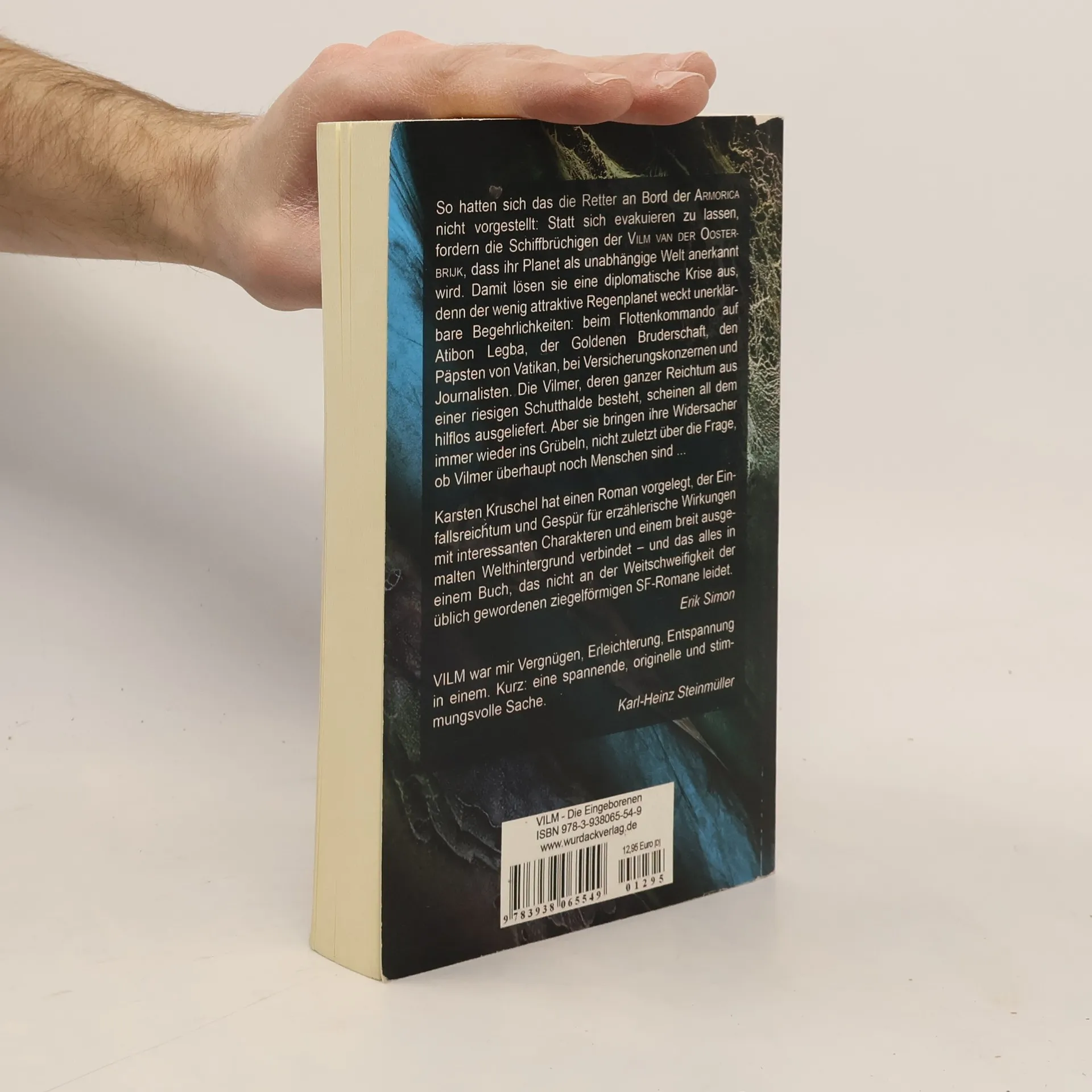 So hatten sich das die Retter an Bord der Armorica nicht vorgestellt: Statt sich evakuieren zu lassen, fordern die Schiffbrüchigen der Vilm van der Oosterbrijk, dass ihr Planet als unabhängige Welt anerkannt wird. Damit lösen sie eine diplomatische Krise aus, denn der wenig attraktive Regenplanet weckt unerklärbare Begehrlichkeiten: beim Flottenkommando auf Atibon Legba, der Goldenen Bruderschaft, den Päpsten von Vatikan, bei Versicherungskonzernen und Journalisten. Die Vilmer, deren ganzer Reichtum aus einer riesigen Schutthalde besteht, scheinen all dem hilflos ausgeliefert. Aber sie bringen ihre Widersacher immer wieder ins Grübeln, nicht zuletzt über die Frage, ob Vilmer überhaupt noch Menschen sind.