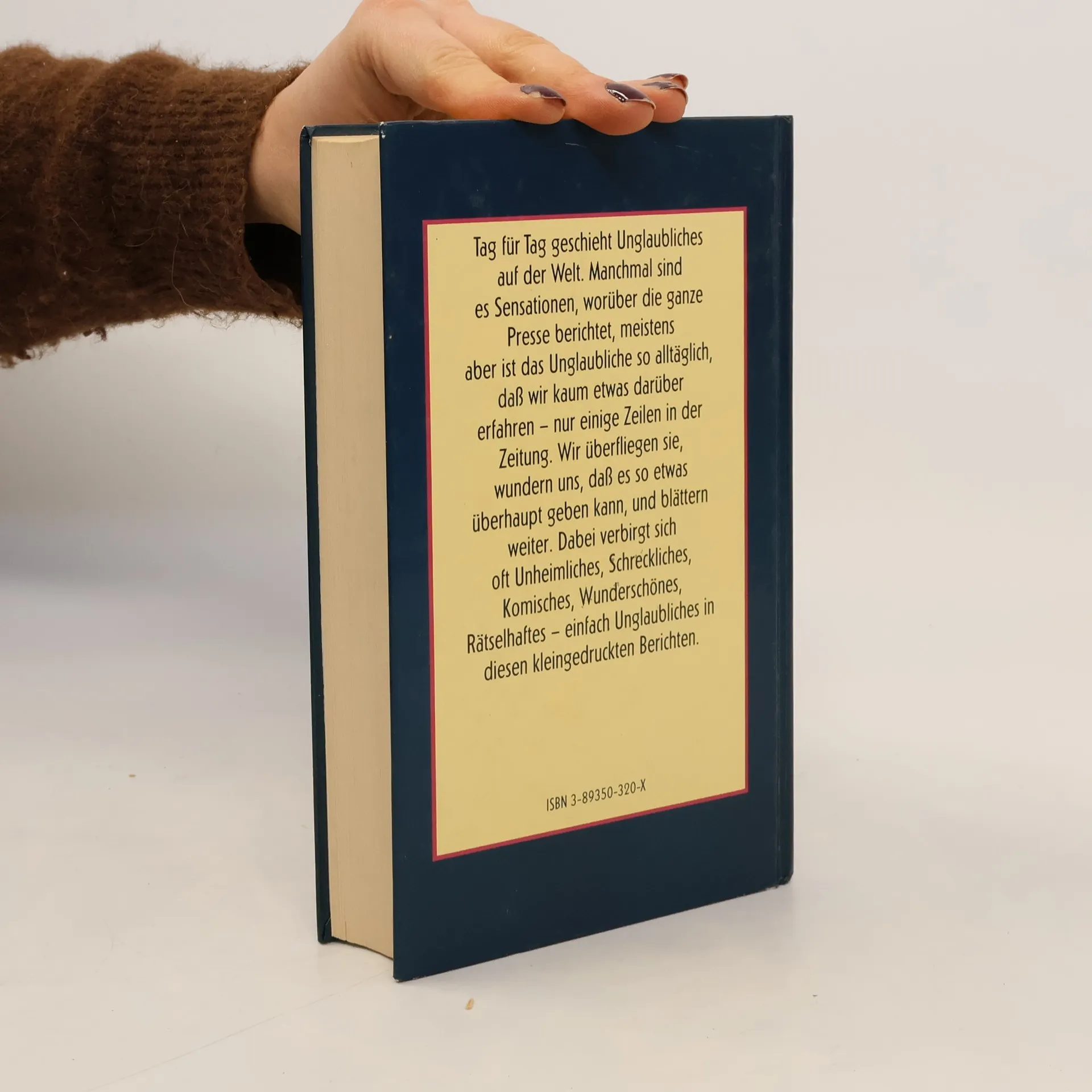 "Deiser Band enthält 30 'unglaubliche Geschichten.' Ein französisches Team von Redakteuren, Autoren und 'Freiwilligen' recherchiert in der ganzen Welt, immer auf der Suche nach spannenden, ungewöhnlichen, skurrilen, einfach unglaublichen Geschichten, die aber alle tatsächlich passiert sind. Es sind Geschichten aus aller Herren Länder, aus allen denkbaren Bereichen des menschlichen Lebens, Geschichten, die bis zum Anfang unseres Jahrhunderts zurüchreichen, und solche, die sich erst unlängst zugetragen haben"--P. 4. of cover.