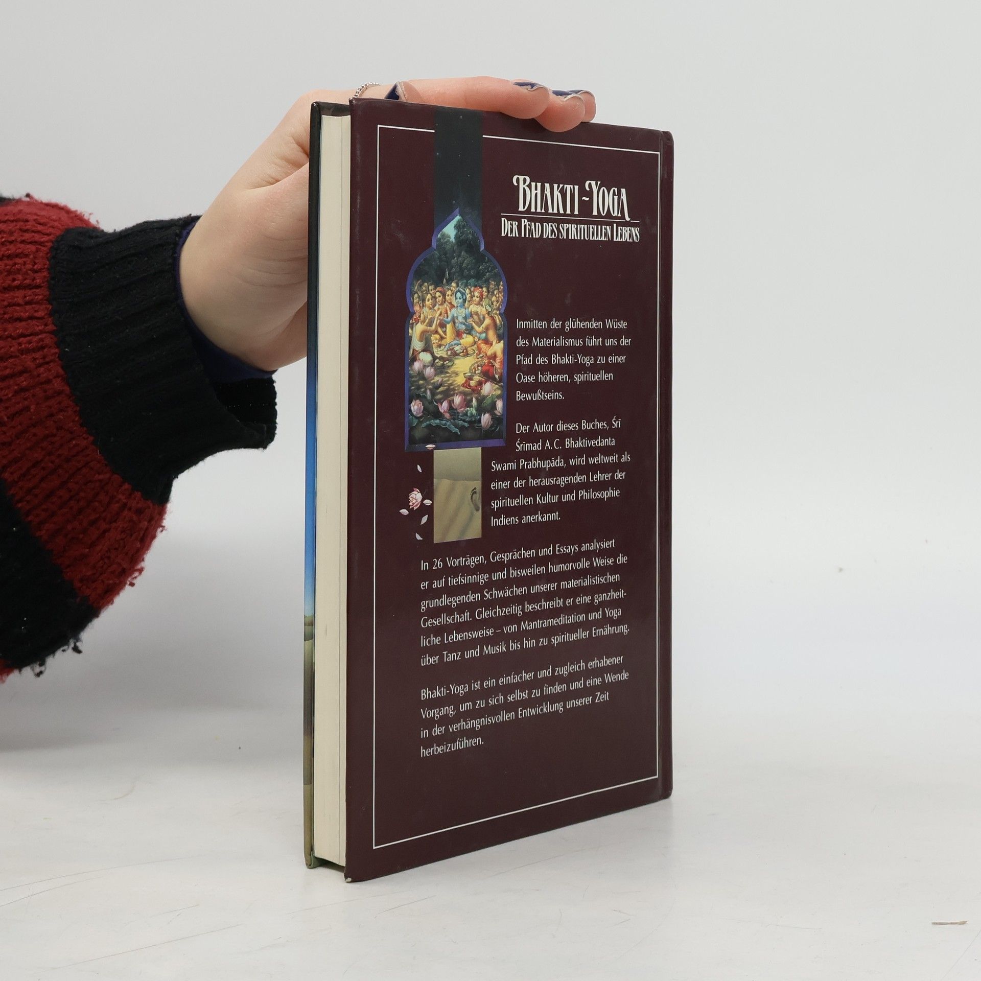 Der Autor dieses Buches, Sri Srimad A.C. Bhaktivedanta Swami Prabhupada, wird weltweit als einer der herausragenden Lehrer der spirituellen Kultur und Philosophie Indiens anerkannt. In 26 Vorträgen, Gesprächen und Essays analysiert er auf tiefsinnige und bisweilen humorvolle Weise die grundlegenden Schwächen unserer materialistischen Gesellschaft. Gleichzeitig beschreibt er eine ganzheitliche Lebensweise – von Mantra-Meditation und Yoga über Tanz und Musik bis hin zu spiritueller Ernährung. Bhakti-Yoga ist ein einfacher und zugleich erhabener Vorgang, um zu sich selbst zu finden und eine Wende in der verhängnisvollen Entwicklung unserer Zeit herbeizuführen.