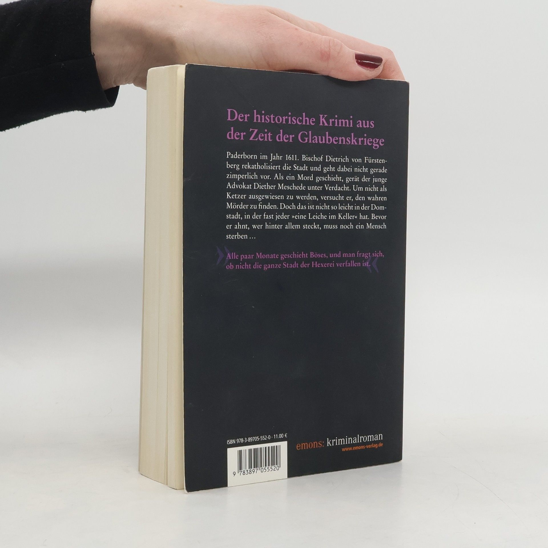 Paderborn im Jahr 1611. Bischof Dietrich von Fürstenberg rekatholisiert die Stadt, und dies mit nicht gerade zimperlichen Mitteln. Als ein Mord geschieht, gerät der junge Advokat Diether Meschede unter Verdacht. Um nicht als Ketzer ausgewiesen zu werden, versucht er, den wahren Mörder zu finden. Doch das ist nicht so leicht in der Domstadt, in der fast jeder »eine Leiche im Keller« hat. Bevor er ahnt, wer hinter allem steckt, muss noch ein Mensch sterben...