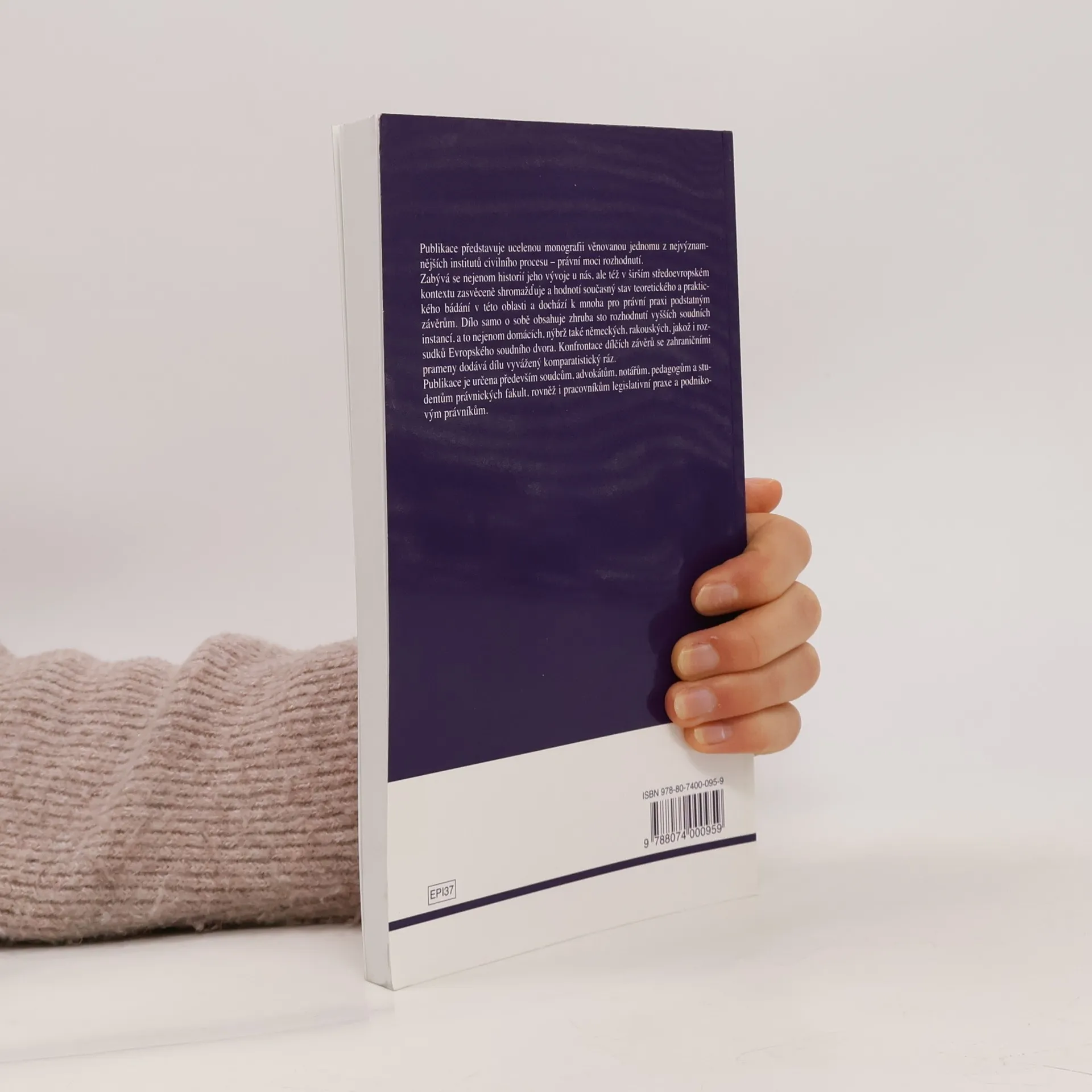 Po dlouhé době vychází první ucelená monografie věnovaná jednomu z nejvýznamějších institutů civilního procesu - právní moci rozhodnutí. Publikace se zabývá nejen historií jeho vývoje u nás, ale též v širším ( středoevropském ) kontextu. Zasvěceně shromažďuje a hodnotí současný stav teoretického a praktického bádání v této oblasti a dochází k mnoha pro právní praxi podstatným závěrům. Dílo obsahuje odkazy na cca 100 rozhodnutí vyšších soudních instancí, a to nejen domácích, nýbrž také německých a rakouských, jakož i rozsudků Evropského soudního dvora.