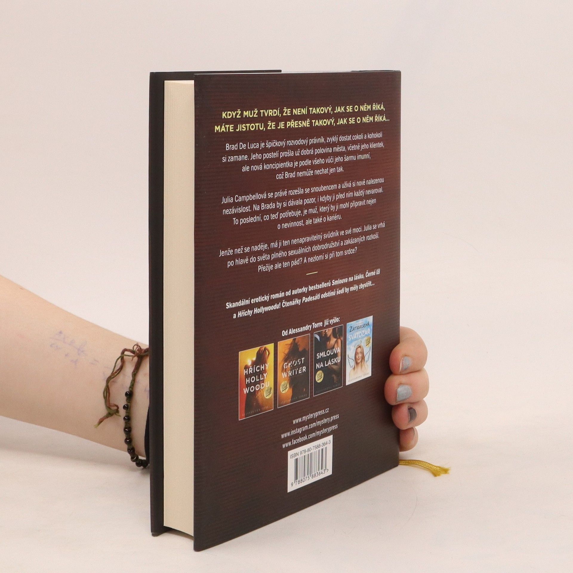 KDYŽ MUŽ TVRDÍ, ŽE NENÍ TAKOVÝ, JAK SE O NĚM ŘÍKÁ, MÁTE JISTOTU, ŽE JE PŘESNĚ TAKOVÝ, JAK SE O NĚM ŘÍKÁ… Brad De Luca je špičkový rozvodový právník, zvyklý dostat cokoli a kohokoli si zamane. Jeho postelí prošla už dobrá polovina města, včetně jeho klientek, ale nová koncipientka je podle všeho vůči jeho šarmu imunní, což Brad nemůže nechat jen tak. Julia Campbellová se právě rozešla se snoubencem a užívá si nově nalezenou nezávislost. Na Brada by si dávala pozor, i kdyby ji před ním každý nevaroval. To poslední, co teď potřebuje, je muž, který by ji mohl připravit nejen o nevinnost, ale také o kariéru. Jenže než se naděje, má ji ten nenapravitelný svůdník ve své moci. Julia se vrhá po hlavě do světa plného sexuálních dobrodružství a zakázaných rozkoší. Přežije ale ten pád? A nezlomí si při tom srdce? ___ Skandální erotický román od autorky bestsellerů Smlouva na lásku, Černé lži a Hříchy Hollywoodu! Čtenářky Padesáti odstínů šedi by měly zbystřit…