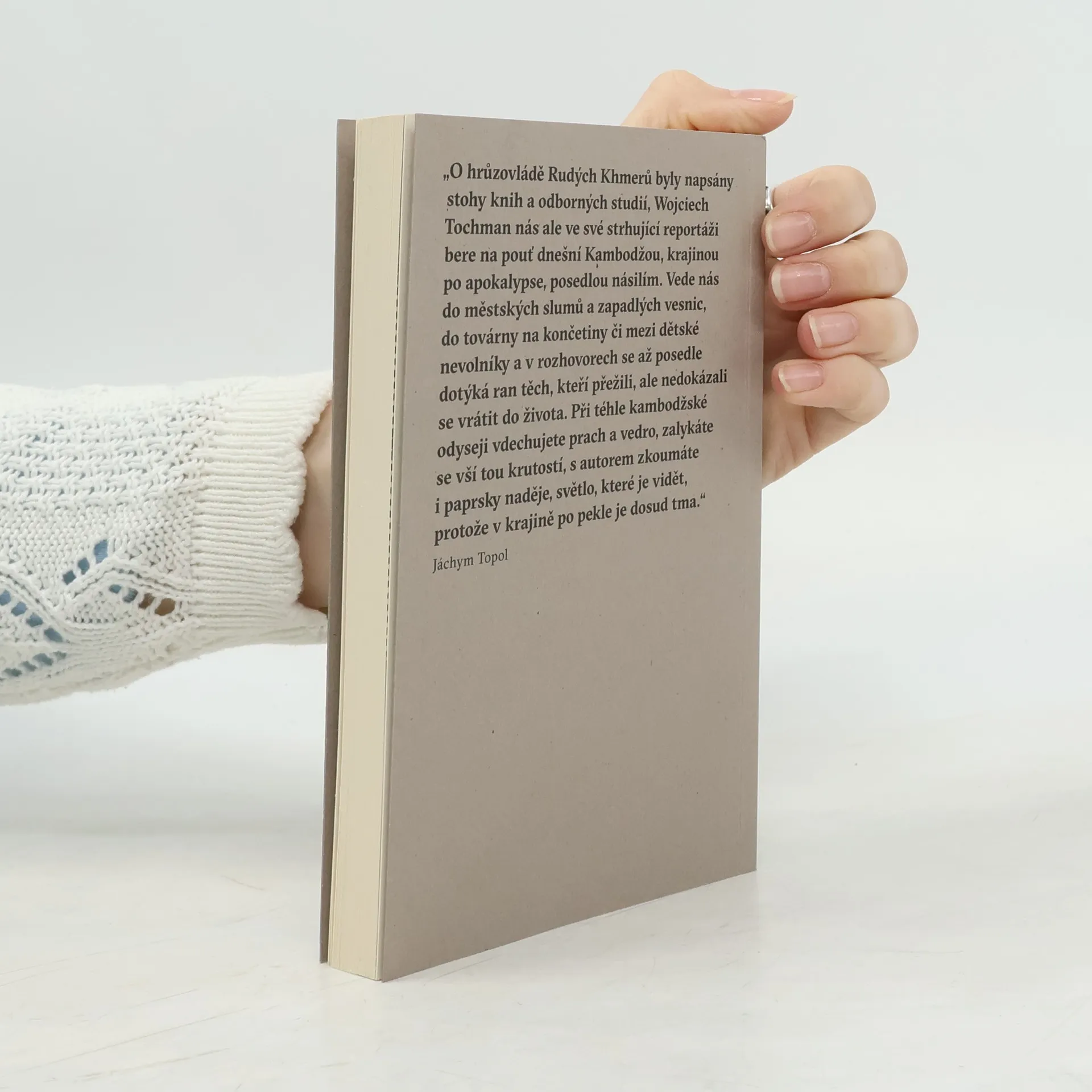 Sledujete, jak mizí vaši příbuzní. Mučí a vraždí je vaši sousedé nebo známí. Záminka může být jakákoli. Potom to všechno skončí. A teď se naučte s bývalými dozorci a popravčími opět žít. Vítejte v Kambodži. Wojciech Tochman prozkoumává ve svých reportážích temná místa. Do Bosny, Rwandy nebo Kambodže se nevydával za senzací, ale chtěl se dotknout toho, čeho se bojíme, co se v lidech někde hluboko skrývá. Pol Pot a jeho příběh přitahují pozornost, ale člověk připoutaný řetězem u rozpadlé chatrče? Ostatně, kdo může svého nemocného příbuzného zavřít do klece? Jedině zlý člověk. To je jednoduchá odpověď. Tochman strávil v Kambodži, jedné z nejchudších zemí stále ohrožených přírodními katastrofami, dostatečně dlouhou dobu na to, aby jednoduché odpovědi nehledal. Doprovázel psychiatričku Sody Ang, která se pokouší vysvětlit rodinám, co skutečně trápí jejich nemocné příbuzné, a začít je skutečně léčit. Protože zatím jsou místo léčby psychóz zavíráni do klecí nebo přivazováni za nohu. Narušené duše, i takové jsou výsledky řádění Rudých Khmerů. Kambodžská společnost se rozložila, přišla o vzájemnou důvěru, zapletla se do sítě strachu a pověr. Zlí duchové – tak by to Kambodžané popsali. Když je jednou vypustíte, dlouho netrvá, než jsou zase zkroceni.
