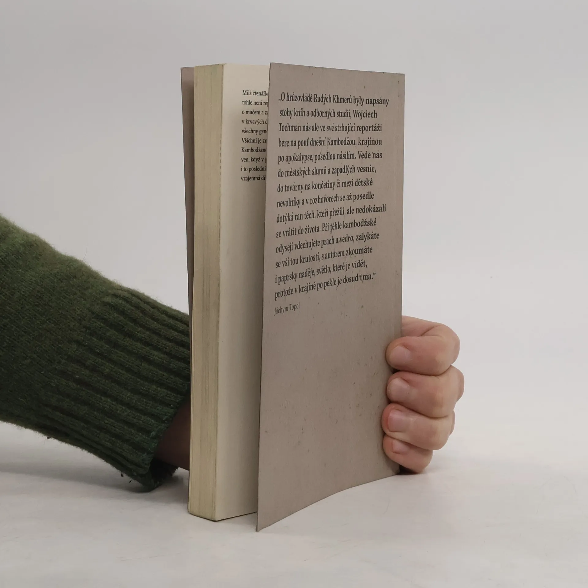 Sledujete, jak mizí vaši příbuzní. Mučí a vraždí je vaši sousedé nebo známí. Záminka může být jakákoli. Potom to všechno skončí. A teď se naučte s bývalými dozorci a popravčími opět žít. Vítejte v Kambodži. Wojciech Tochman prozkoumává ve svých reportážích temná místa. Do Bosny, Rwandy nebo Kambodže se nevydával za senzací, ale chtěl se dotknout toho, čeho se bojíme, co se v lidech někde hluboko skrývá. Pol Pot a jeho příběh přitahují pozornost, ale člověk připoutaný řetězem u rozpadlé chatrče? Ostatně, kdo může svého nemocného příbuzného zavřít do klece? Jedině zlý člověk. To je jednoduchá odpověď. Tochman strávil v Kambodži, jedné z nejchudších zemí stále ohrožených přírodními katastrofami, dostatečně dlouhou dobu na to, aby jednoduché odpovědi nehledal. Doprovázel psychiatričku Sody Ang, která se pokouší vysvětlit rodinám, co skutečně trápí jejich nemocné příbuzné, a začít je skutečně léčit. Protože zatím jsou místo léčby psychóz zavíráni do klecí nebo přivazováni za nohu. Narušené duše, i takové jsou výsledky řádění Rudých Khmerů. Kambodžská společnost se rozložila, přišla o vzájemnou důvěru, zapletla se do sítě strachu a pověr. Zlí duchové – tak by to Kambodžané popsali. Když je jednou vypustíte, dlouho netrvá, než jsou zase zkroceni.