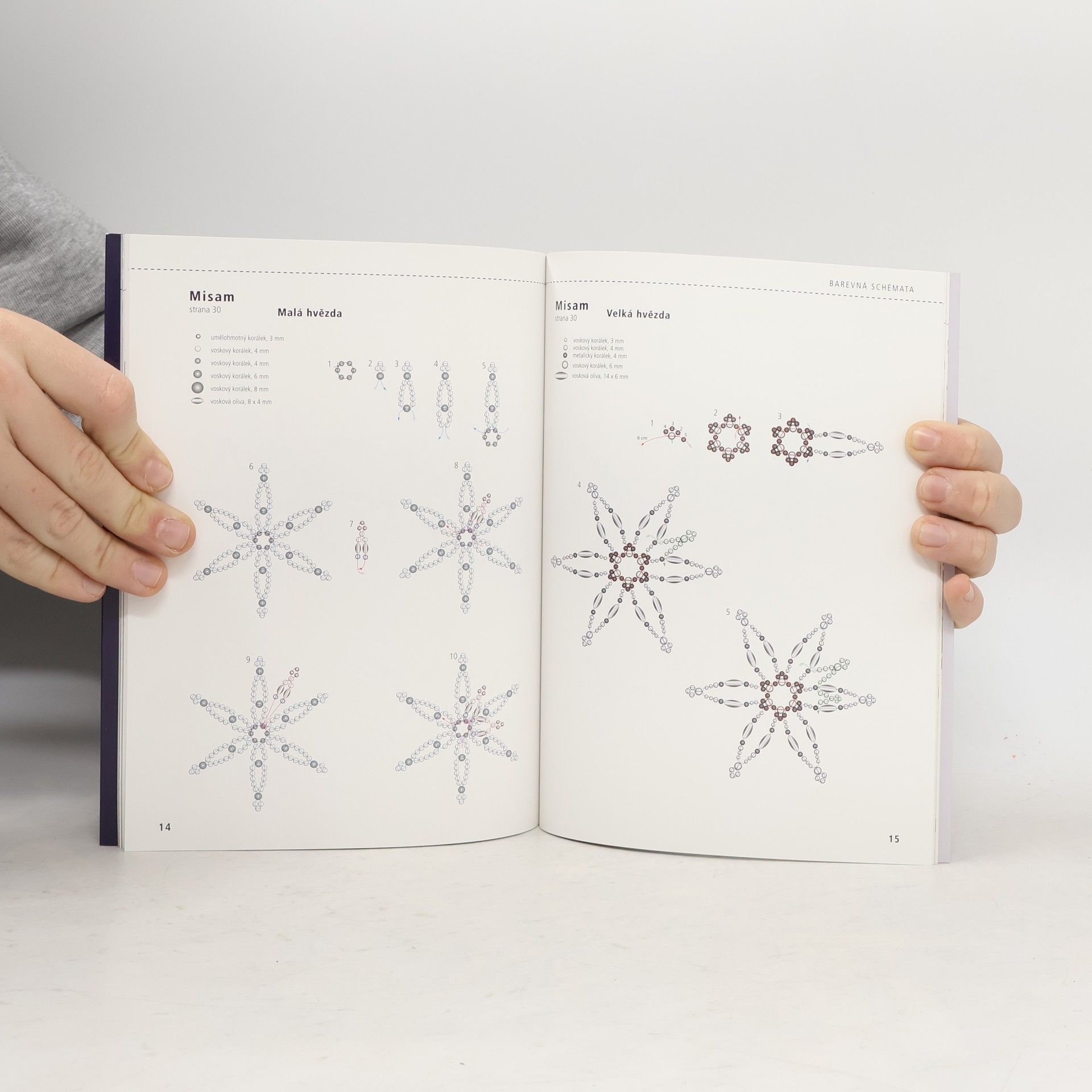 Působivé hvězdy navlékané na drátek nebo nasunované na magickou perlu se stanou vánočními dekoracemi, které vám nikdy nezevšední. Zhotovení všech hvězd je vysvětleno podrobně krok za krokem pomocí obrázků, detailních barevných schémat a přesných návodů.