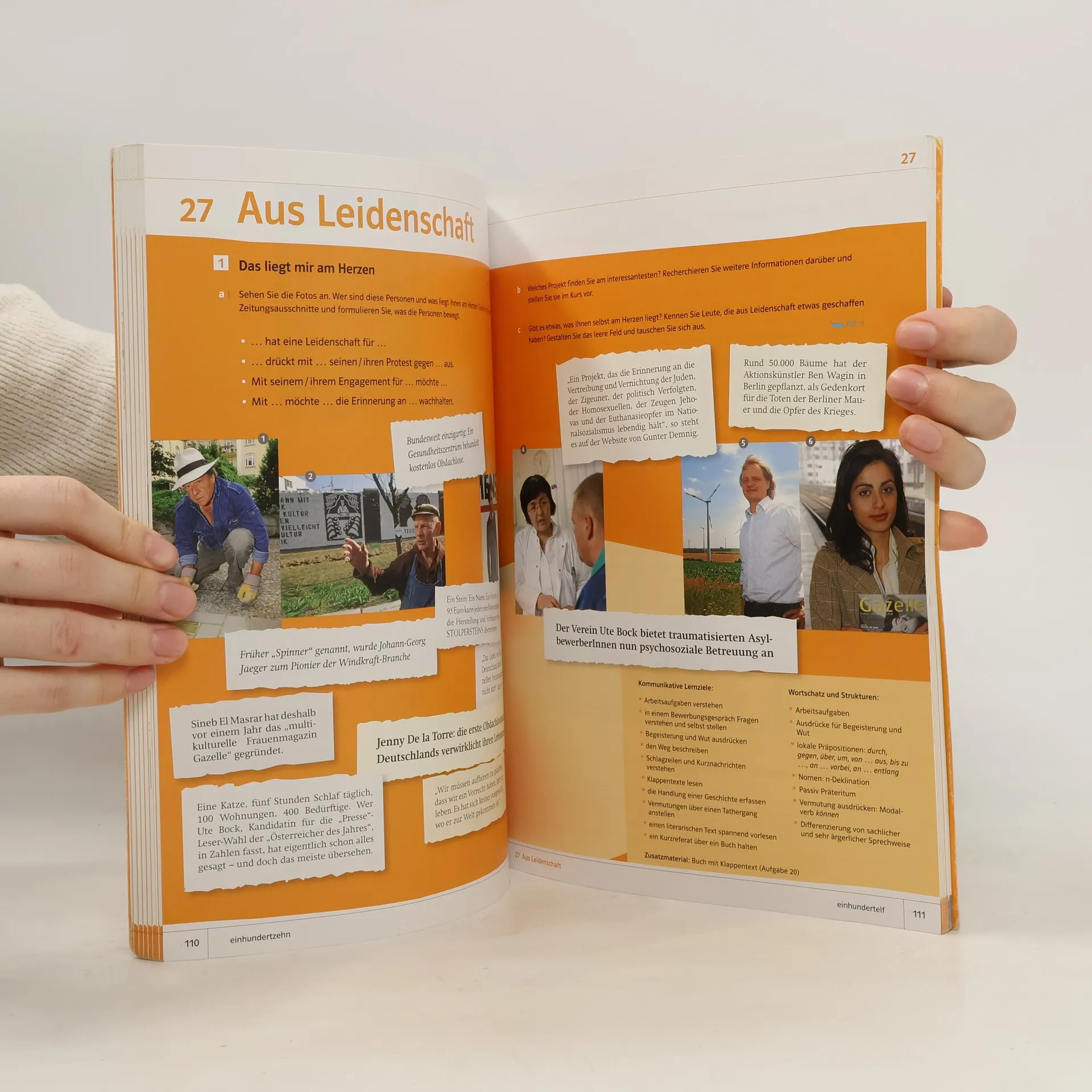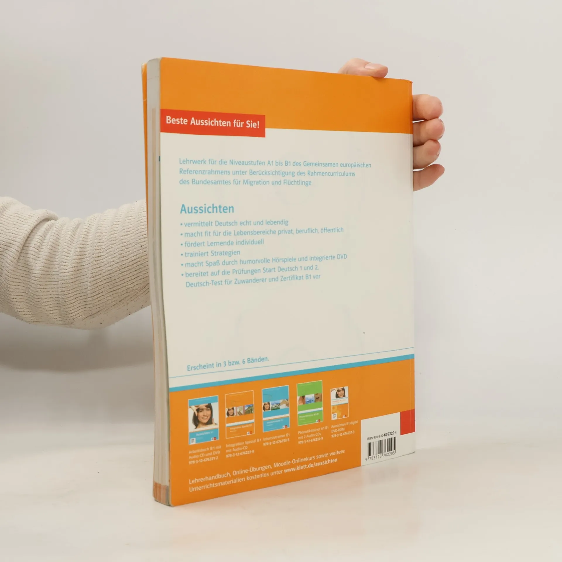 Aussichten ist das neue Lehrwerk für Deutsch als Fremdsprache. Es wendet sich an erwachsene Lerner ohne Vorkenntnisse und deckt die Niveaustufen A1 bis B1 ab. 10 Lektionen mit je 16 Seiten durchgängige Lektionsgeschichten als Hörspiel ein kleinschrittiges Strategietraining nach Lektion 20 und 25 einen ausführlicher Anhang mit Strategierezepten, einer Überblicksgrammatik und einer alphabetischen Wortliste