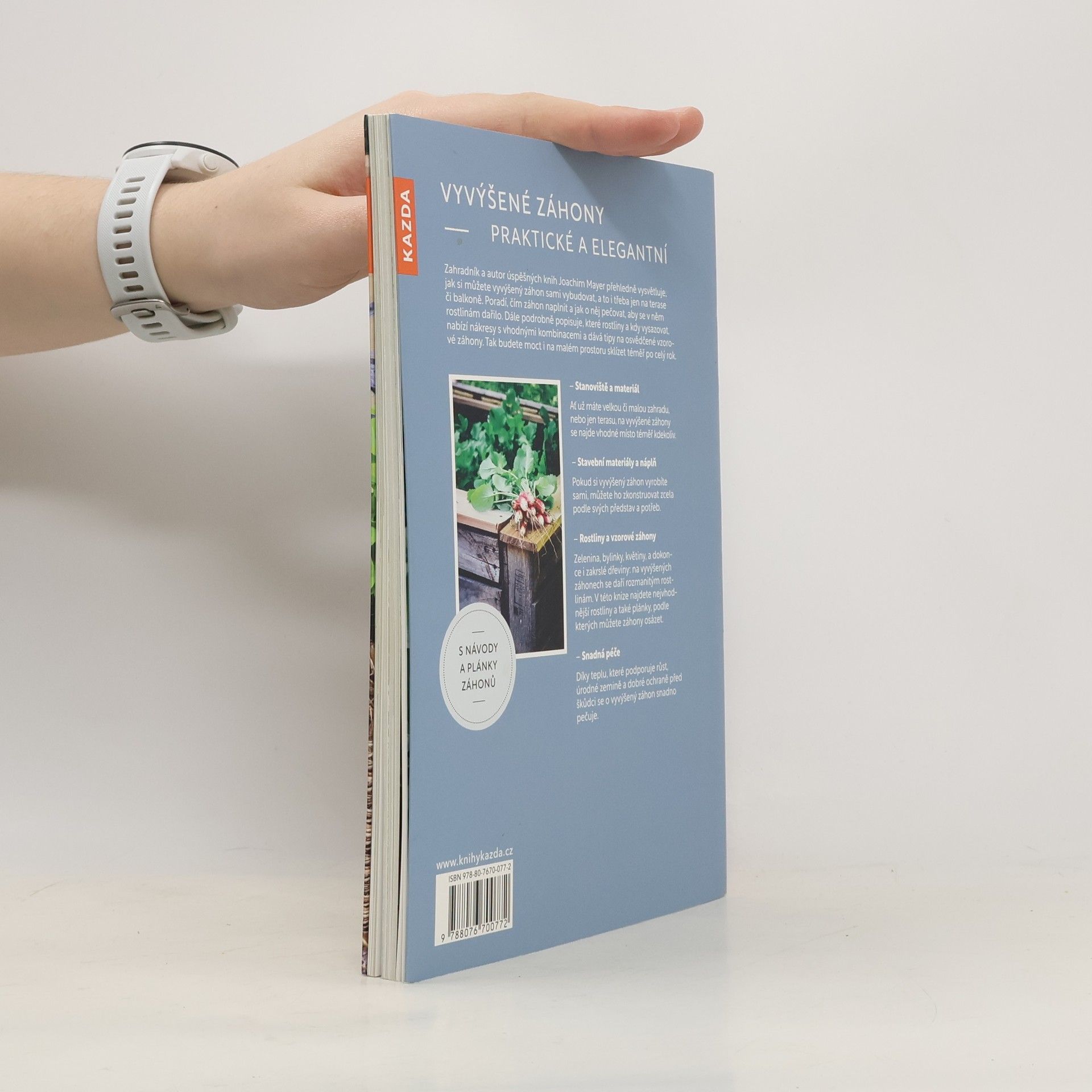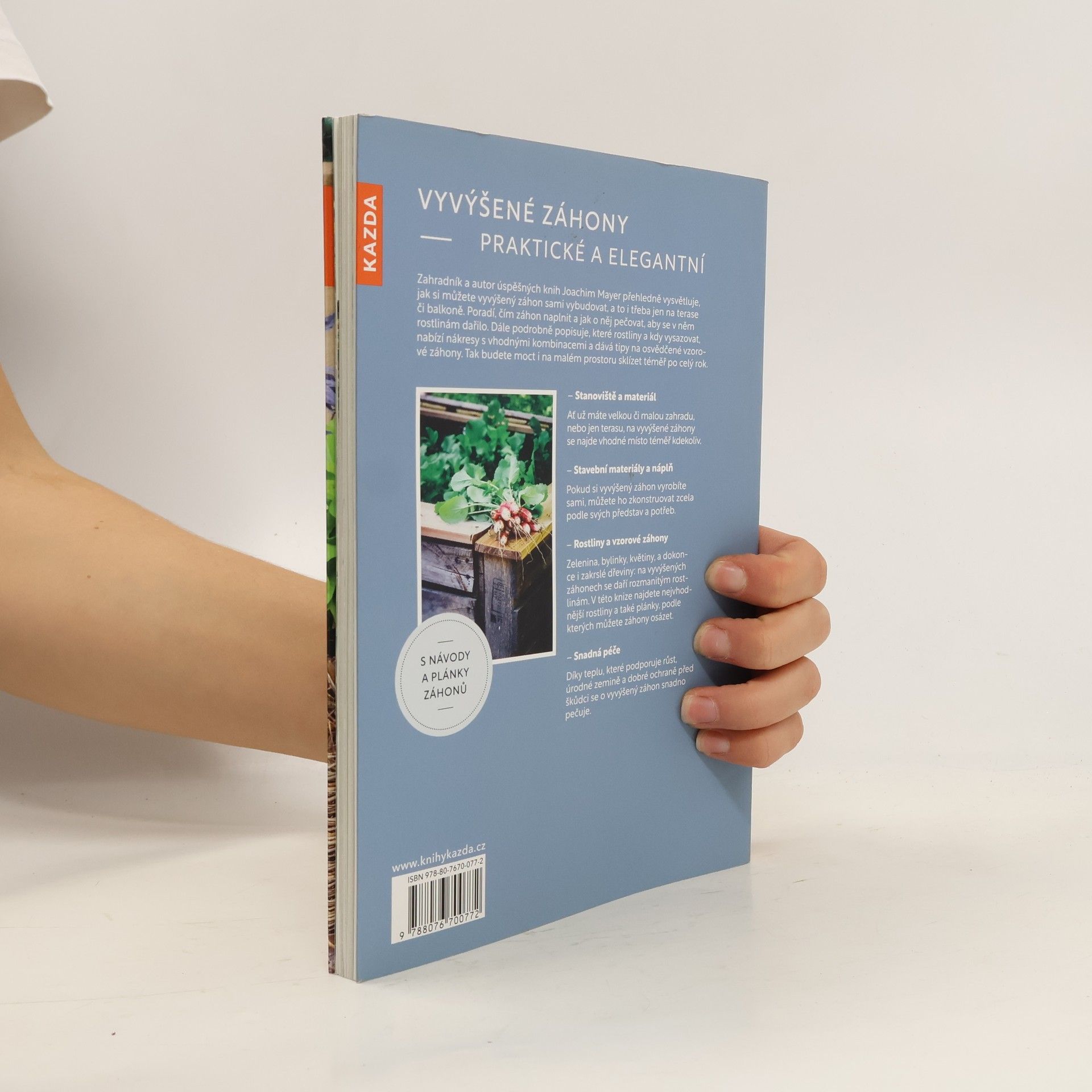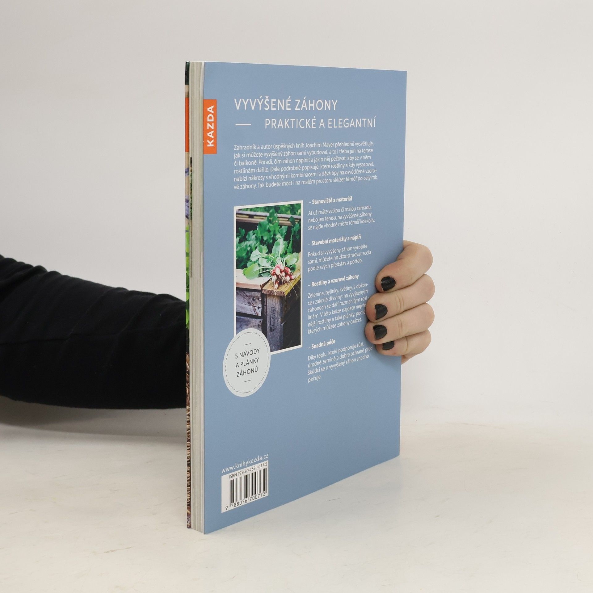 Zahradník a autor úspěšných knih Joachim Mayer přehledně vysvětluje, jak si můžete vyvýšený záhon sami vybudovat, a to i třeba jen na terase či balkoně. Poradí, čím záhon naplnit a jak o něj pečovat, aby se v něm rostlinám dařilo. Dále podrobně popisuje, které rostliny a kdy vysazovat, nabízí nákresy s vhodnými kombinacemi a dává tipy na osvědčené vzorové záhony. Tak budete moct i na malém prostoru sklízet téměř po celý rok. Stanoviště a materiál Ať už máte velkou či malou zahradu, nebo jen terasu, na vyvýšené záhony se najde vhodné místo téměř kdekoliv. Stavební materiály a náplň Pokud si vyvýšený záhon vyrobíte sami, můžete ho zkonstruovat zcela podle svých představ a potřeb. Rostliny a vzorové záhony Zelenina, bylinky, květiny, a dokonce i zakrslé dřeviny: na vyvýšených záhonech se daří rozmanitým rostlinám. V této knize najdete nejvhodnější rostliny a také plánky, podle kterých můžete záhony osázet. Snadná péče Díky teplu, které podporuje růst, úrodné zemině a dobré ochraně před škůdci se o vyvýšený záhon snadno pečuje.