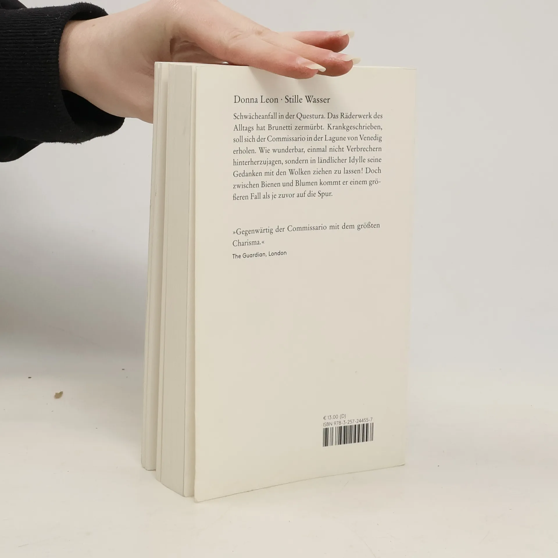 Schwächeanfall in der Questura. Das Räderwerk des Alltags hat Brunetti zermürbt. Krankgeschrieben, soll sich der Commissario in der Lagune von Venedig erholen. Wie wunderbar, einmal nicht Verbrechern hinterherzujagen, sondern in ländlicher Idylle seine Gedanken mit den Wolken ziehen zu lassen! Doch zwischen Bienen und Blumen kommt er einem größeren Fall als je zuvor auf die Spur.