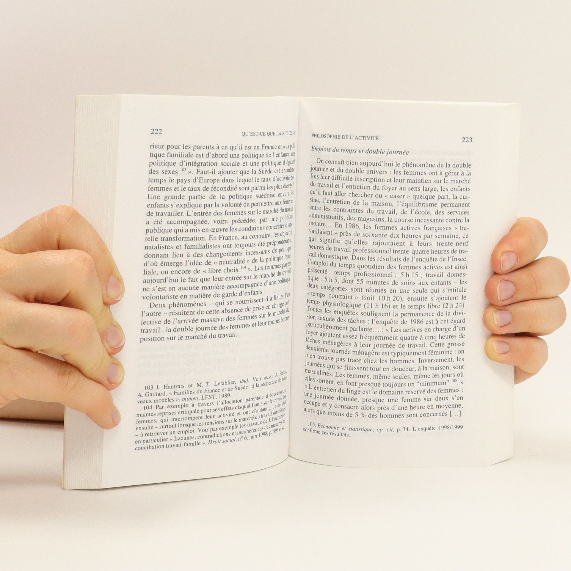 Nous vivons les yeux rivés sur le taux de croissance du " Produit Intérieur Brut ", comme si celui-ci suffisait à faire de nous des sociétés vraiment riches. Indifférent à la manière dont sont répartis les biens, les services, les revenus et les acquis, le PIB n'est affecté ni par la montée de la violence ni par le développement des inégalités ou l'altération de l'environnement, pas plus qu'il ne le serait par l'accroissement constant du niveau d'éducation, la facilité d'accès à des services publics de qualité, l'amélioration générale de l'état de santé de la population ou la promotion d'une réelle égalité entre les hommes et les femmes. Si ce qui importe, c'est ce qui est productif, comment donner de la valeur à des activités qui ne sont productives de rien, ou seulement de relation, de sens, de qualité de vie ? Cette question est particulièrement importante au moment où s'opère une réduction de la durée légale du travail, activité productive par excellence. Si les femmes, sur lesquelles pèsent aujourd'hui les contradictions de notre société, parviennent à promouvoir une autre organisation des temps sociaux, alors peut-être pourrons nous expérimenter des modes de partage et des types de richesse plus modernes, plus démocratiques et plus civilisés. Ce livre a obtenu le prix " Synapsis - CRC - Mutations et Travail ", 1999.