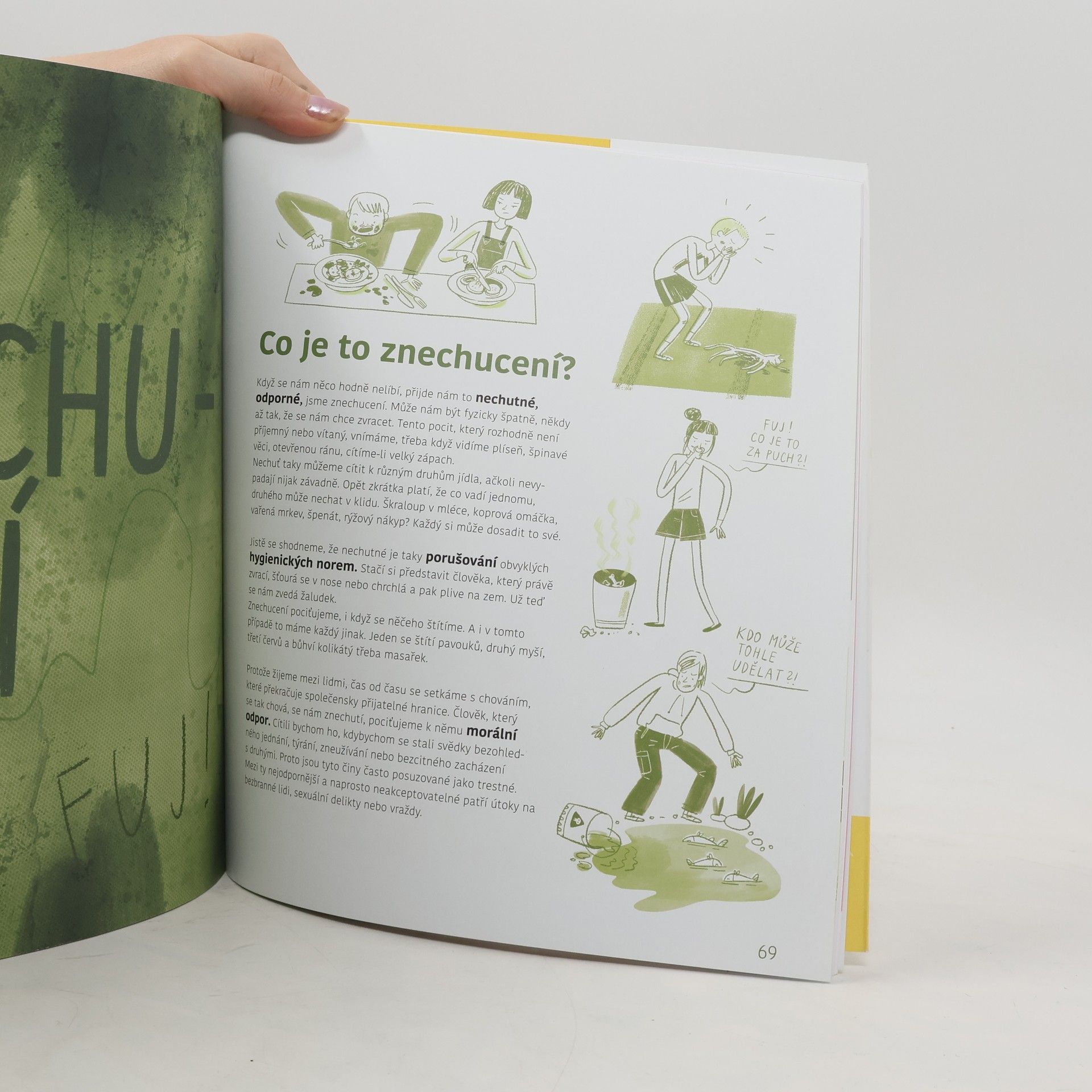 Kniha je určena dětem od osmi let bez ohledu na to, jestli jsou na své pocity odborníci, nebo jim spíš nerozumí a snadno se v nich ztrácí. Ve třinácti kapitolách budou moct prozkoumat klid, překvapení, radost a štěstí, smutek, strach, odvahu, stud, hněv, závist a žárlivost, znechucení, nudu, zájem a lásku. S těmito pocity se v knize seznámí prostřednictvím pětice kamarádů.