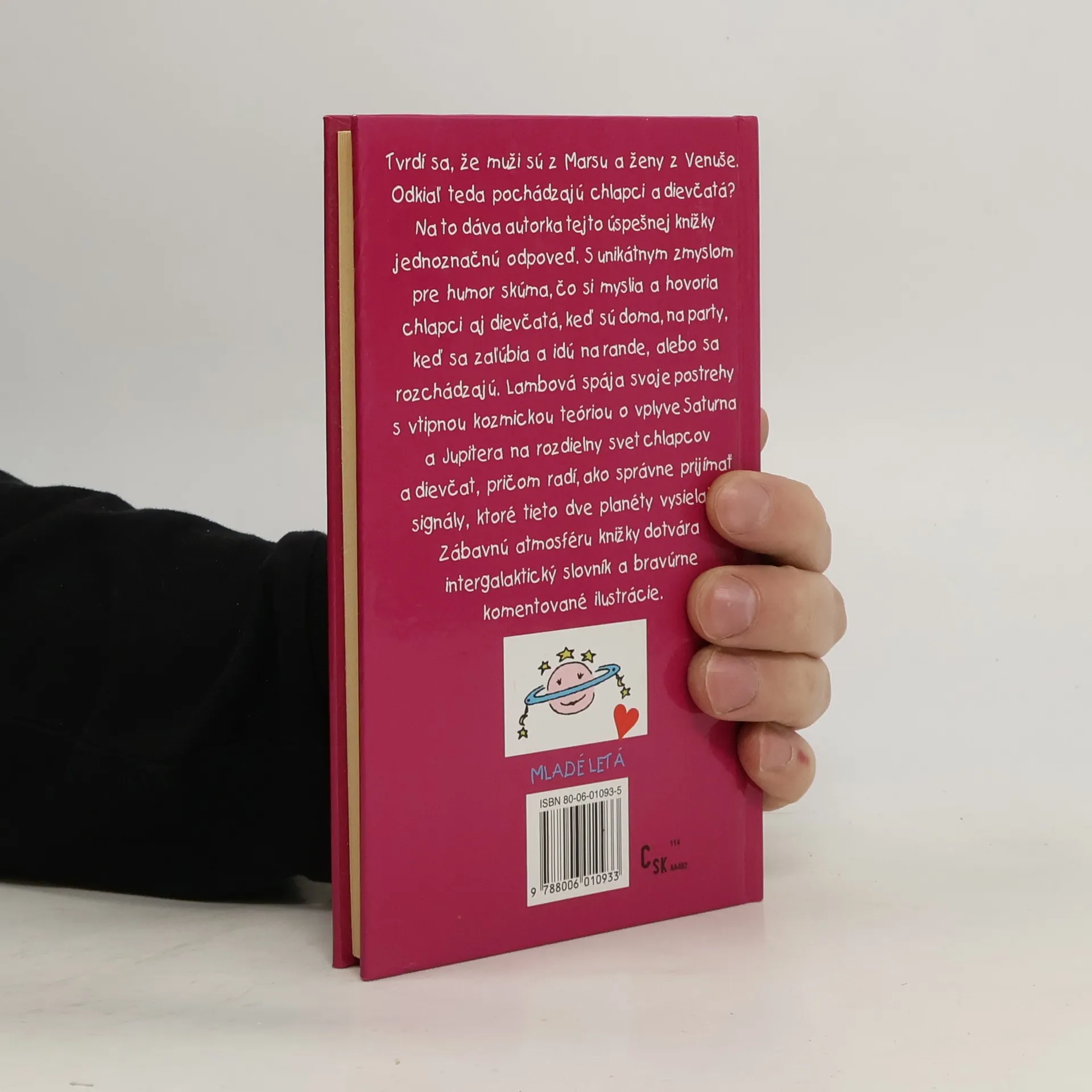 Tvrdí sa, že muži sú z Marsu a ženy z Venuše. Odkiaľ teda pochádzajú chlapci a dievčatá? Na to dáva autorka tejto úspešnej knihy jednoznačnú odpoveď. S unikátnym zmyslom pre humor skúma, čo si myslia a hovoria chlapci aj dievčatá, keď sú doma, na party, keď sa zaľúbia a idú na rande, alebo sa rozchádzajú. Zábavnú atmosféru dopĺňa intergalaktický slovník a bravúrne komentované ilustrácie.