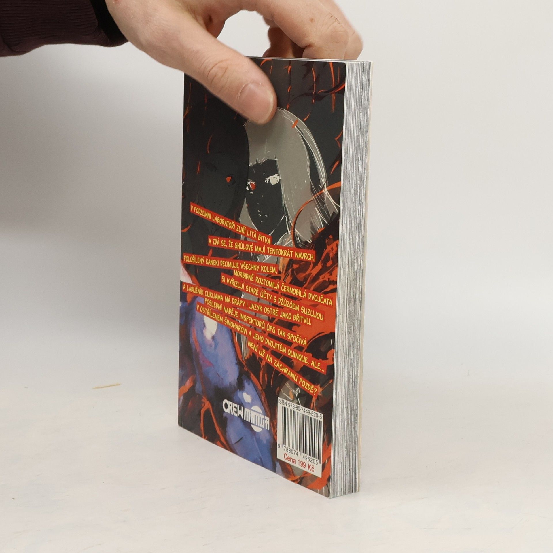 V podzemní laboratoři zuří lítá bitva a zdá se, že ghúlové mají tentokrát navrch. Pološílený Kaneki decimuje všechny kolem, morbidně roztomilá černobílá dvojčata si vyřizují staré účty s Džúzóem Suzujou a Labužník Cukijama má drápy i jazyk ostré jako břitvu. Poslední naděje inspektorů ÚPG tak spočívá v ostříleném Šinoharovi a jeho dvojitém quinque, ale... není už na záchranu pozdě?