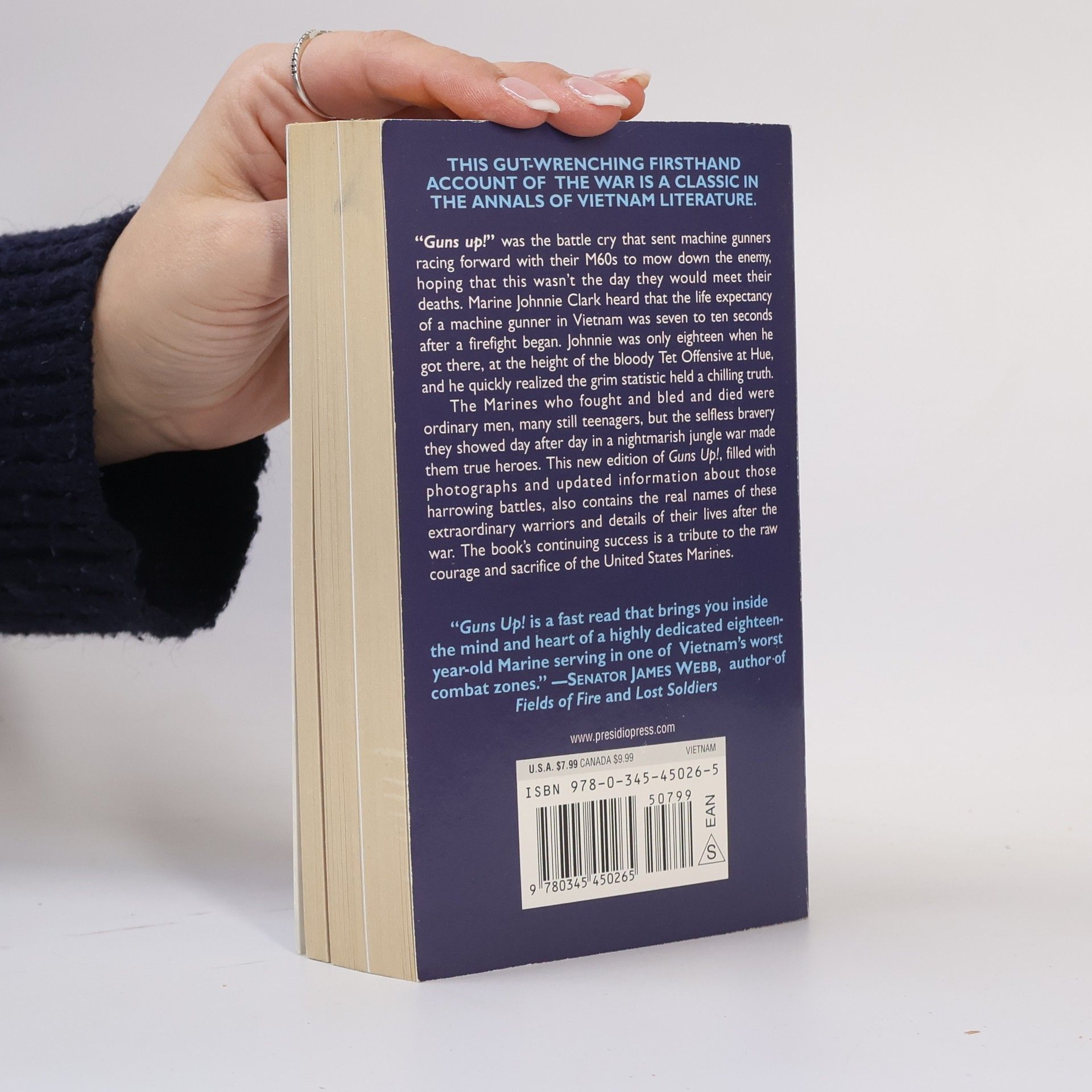 "Guns up!" was the battle cry that sent machine gunners racing forward with their M60s to mow down the enemy, hoping that this wasn't the day they would meet their deaths. Marine Johnnie Clark heard that the life expectancy of a machine gunner in Vietnam was seven to ten seconds after a firefight began. Johnnie was only eighteen when he got there, at the height of the bloody Tet Offensive at Hue, and he quickly realized the grim statistic held a chilling truth.The Marines who fought and bled and died were ordinary men, many still teenagers, but the selfless bravery they showed day after day in a nightmarish jungle war made them true heroes. This new edition of Guns Up!, filled with photographs and updated information about those harrowing battles, also contains the real names of these extraordinary warriors and details of their lives after the war. The book's continuing success is a tribute to the raw courage and sacrifice of the United States Marines.