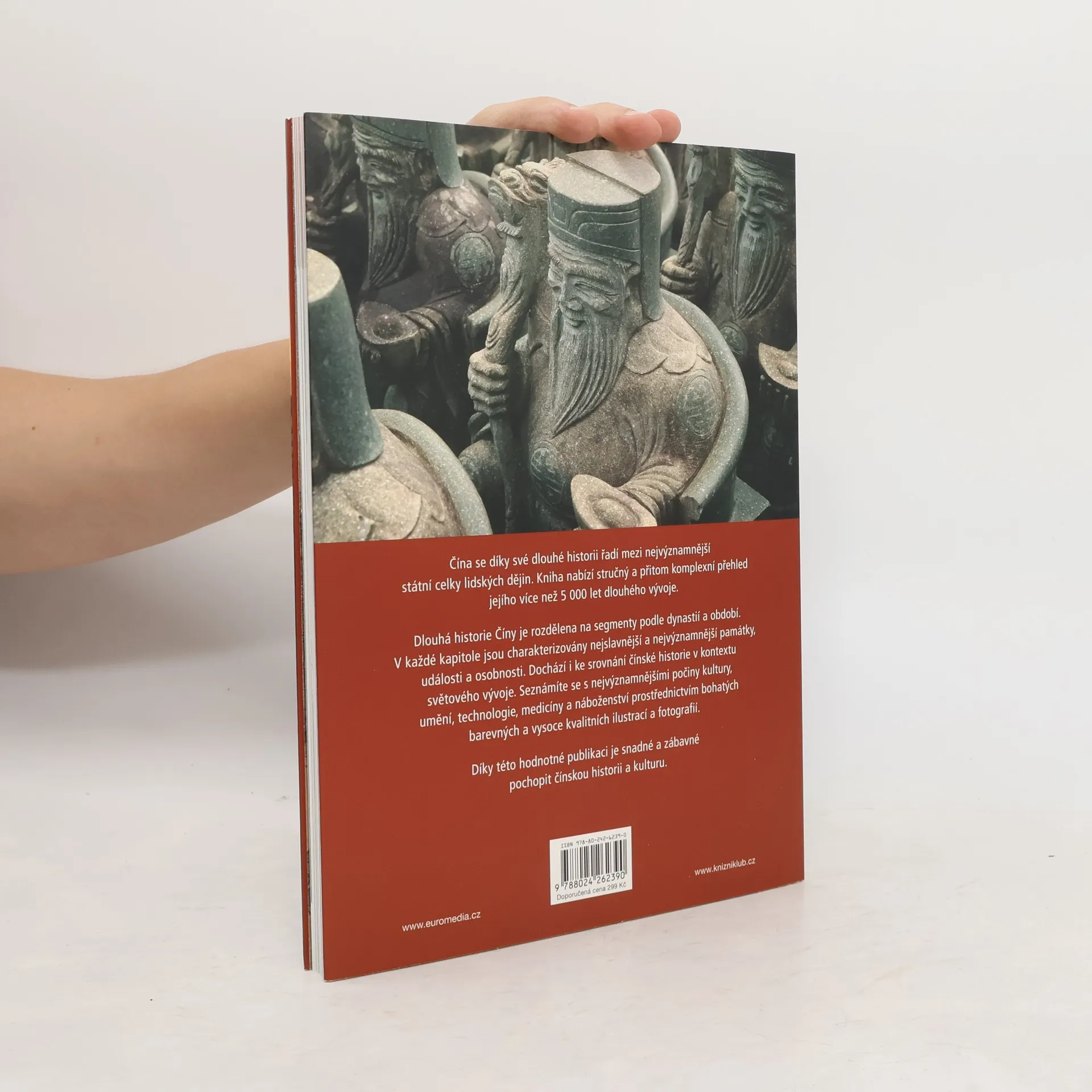 Čína se díky své dlouhé historii řadí mezi nejvýznamnější státní celky lidských dějin. Kniha nabízí stručný a přitom komplexní přehled jejího více než 5 000 let dlouhého vývoje. Kulturní vývoj, umění, vynálezy, náboženství, technologie – všechna klíčová témata doprovázejí autentické fotografie.