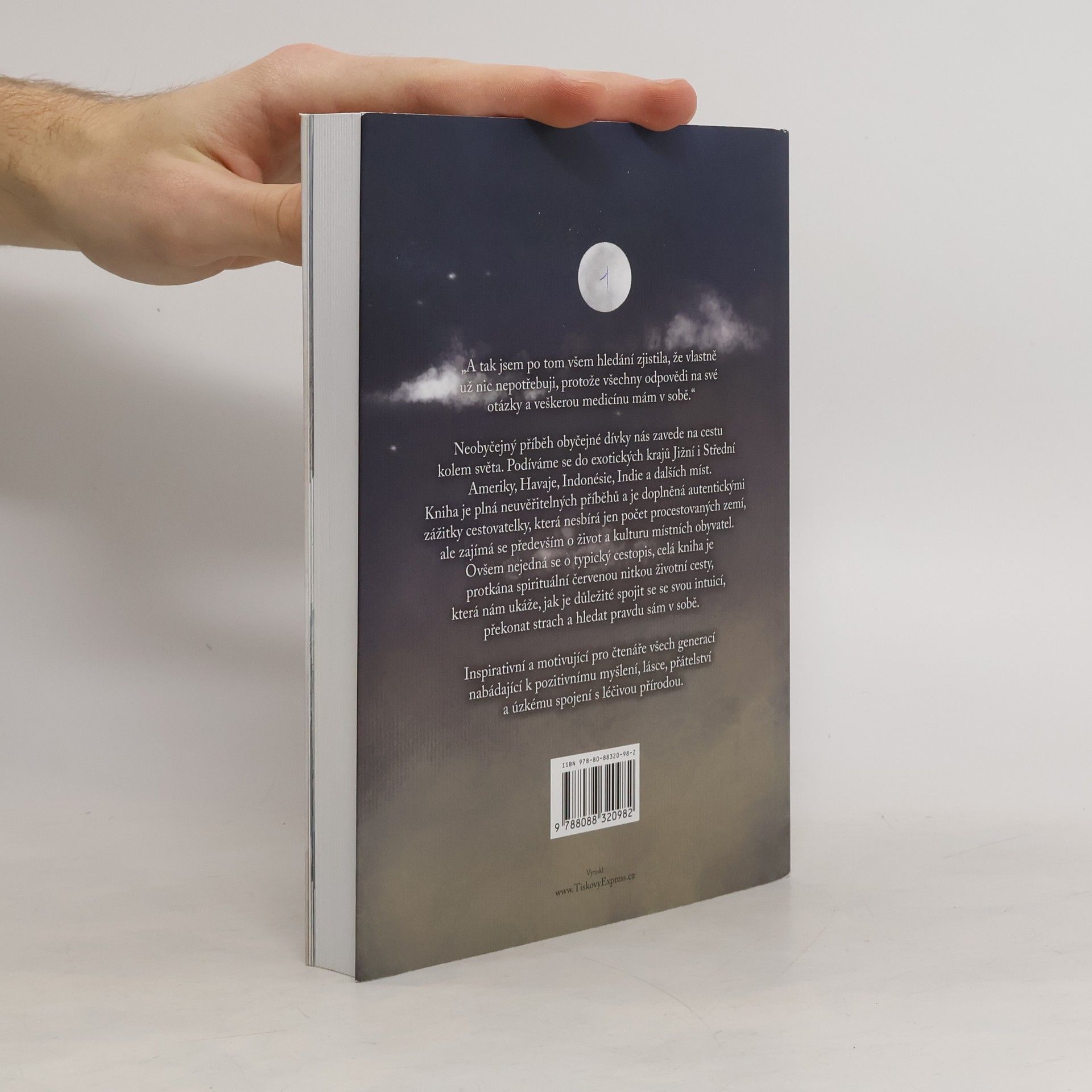 Neobyčejný příběh obyčejné dívky nás zavede na cestu kolem světa. Podíváme se do exotických krajů Jižní i Střední Ameriky, Havaje, Indonésie, Indie a dalších míst. Kniha je plná neuvěřitelných příběhů a je doplněná autentickými zážitky cestovatelky, která nesbírá jen počet procestovaných zemí, ale zajímá se především o život a kulturu místních obyvatel. Ovšem nejedná se o typický cestopis, celá kniha je protkána spirituální červenou nitkou životní cesty, která nám ukáže, jak je důležité spojit se se svou intuicí, překonat strach a hledat pravdu sám v sobě. Inspirativní a motivující pro čtenáře všech generací nabádající k pozitivnímu myšlení, lásce, přátelství a úzkému spojeni s léčivou přírodou.