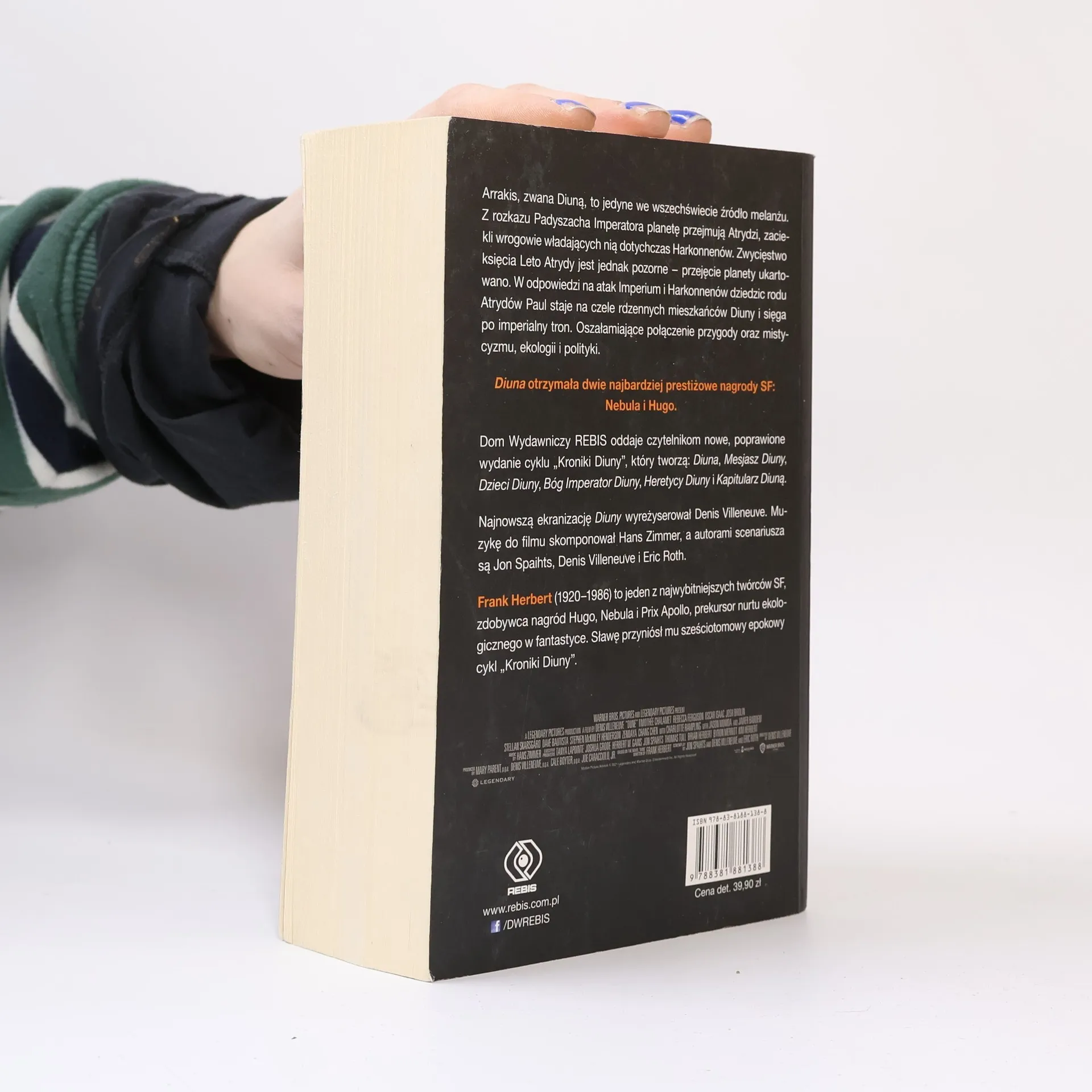 Oszałamiające połączenie przygody oraz mistycyzmu, ekologii i polityki. Arrakis, zwana Diuną, to jedyne we wszechświecie źródło melanżu. Z rozkazu Padyszacha Imperatora planetę przejmują Atrydzi, zaciekli wrogowie władających nią dotychczas Harkonnenów. Zwycięstwo księcia Leto Atrydy jest jednak pozorne – przejęcie planety ukartowano. W odpowiedzi na atak Imperium i Harkonnenów dziedzic rodu Atrydów Paul staje na czele rdzennych mieszkańców Diuny i sięga po imperialny tron. Diuna otrzymała dwie najbardziej prestiżowe nagrody SF: Nebula i Hugo. Dom Wydawniczy REBIS oddaje czytelnikom nowe, poprawione wydanie cyklu „Kroniki Diuny”, który tworzą: Diuna, Mesjasz Diuny, Dzieci Diuny, Bóg Imperator Diuny, Heretycy Diuny i Kapitularz Diuną. Najnowszą ekranizację Diuny wyreżyserował Denis Villeneuve (Blade Runner 2049, Sicario). Autorami scenariusza są Eric Roth (Forrest Gump), Jon Spaihts (Doktor Strange) i Denis Villeneuve, a muzyki – Hans Zimmer (Gladiator, Incepcja, Dunkierka). W obsadzie gwiazdy światowego kina: Timothée Chalamet, Rebecca Ferguson, Stellan Skarsgard, Jason Momoa, Charlotte Rampling, Javier Bardem, Josh Brolin, Zendaya i Oscar Isaac.