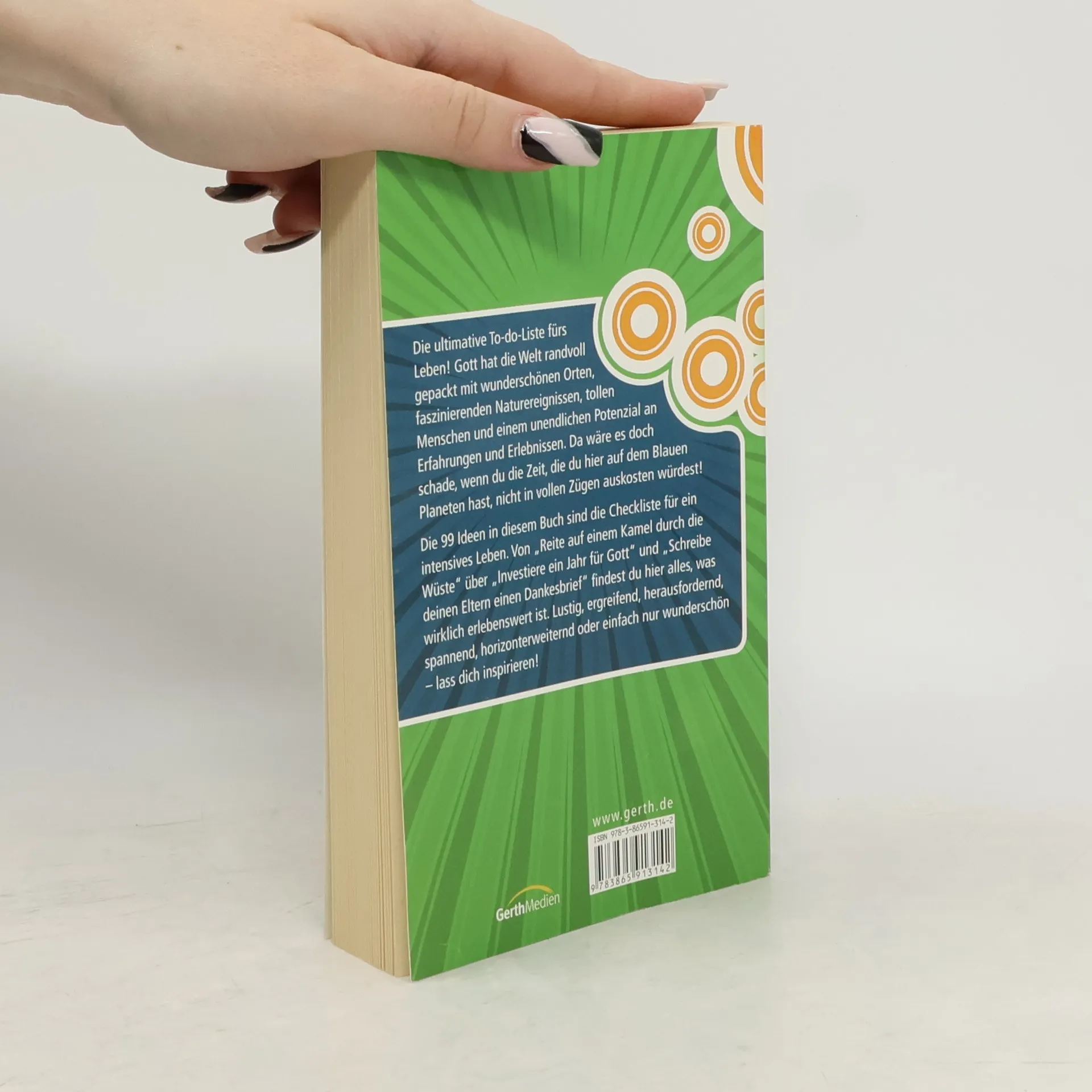 Die ultimative To-do-Liste fürs Leben! Gott hat die Welt randvoll gepackt mit unglaublichen Möglichkeiten, wunderschönen Orten, faszinierenden Naturereignissen und tollen Menschen. Da wäre es doch schade, wenn du die Zeit, die du hier auf dem Blauen Planeten hast, nicht in vollen Zügen auskosten würdest! Die 99 Ideen in diesem Buch sind eine Checkliste für ein intensives Leben. Von "Reite auf einem Kamel durch die Wüste" über "Stell eine zerbrochene Beziehung wieder her" und "Schreibe deinen Eltern einen Dankesbrief" findest du hier alles, was wirklich erlebenswert ist. Lass dich inspirieren!