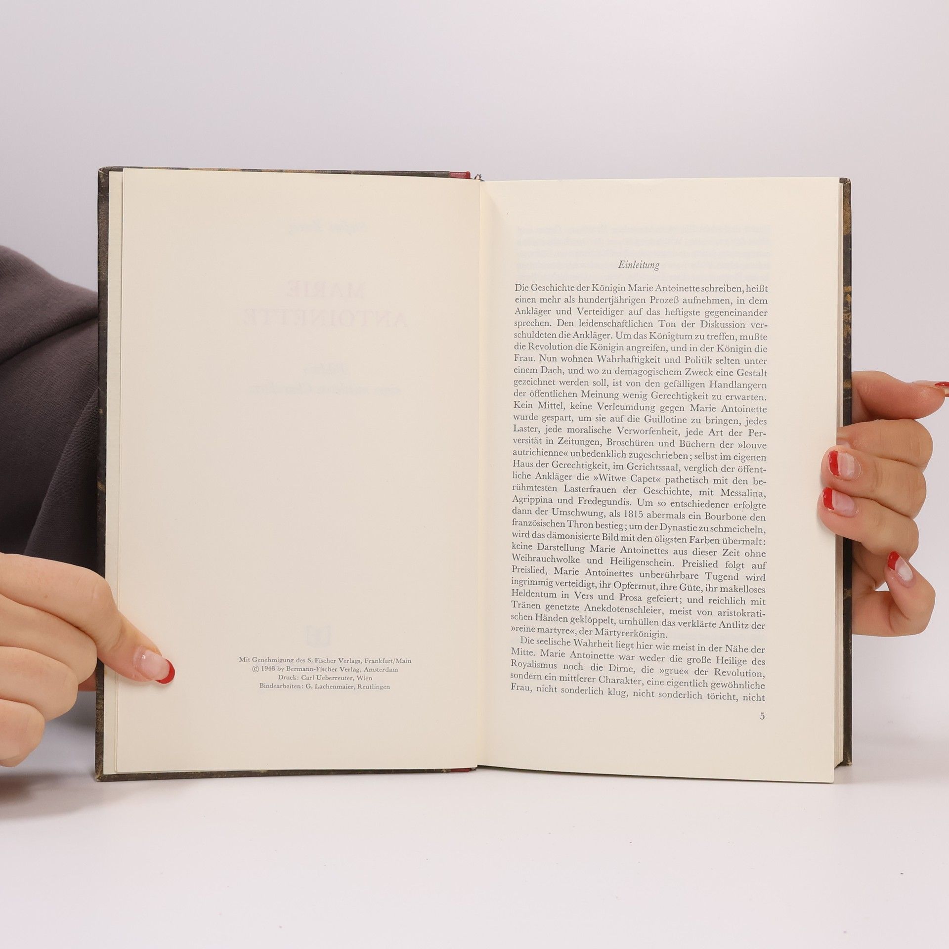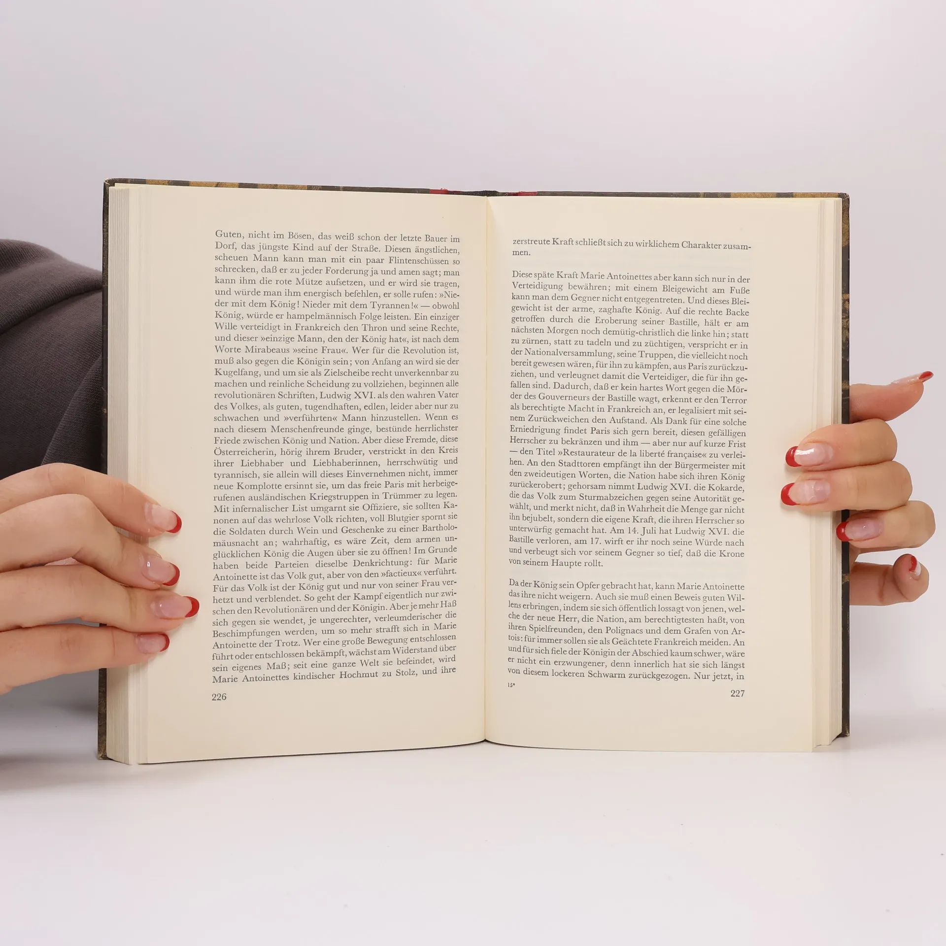 Marie Antoinette (1755–1793) ging als berühmtestes Opfer der Guillotine in die europäische Geschichte ein. Stefan Zweig porträtiert sie als »eine eigentlich gewöhnliche Frau«, die zwar dazu bestimmt, aber nicht unbedingt dafür geschaffen war, Königin von Frankreich zu werden. Ihr Leben voll unbändiger Lust an Vergnügen und Genuss, Prunk und Luxus endete im Oktober 1793: Erhobenen Hauptes beschritt sie den letzten Weg zur Place de la Concorde.